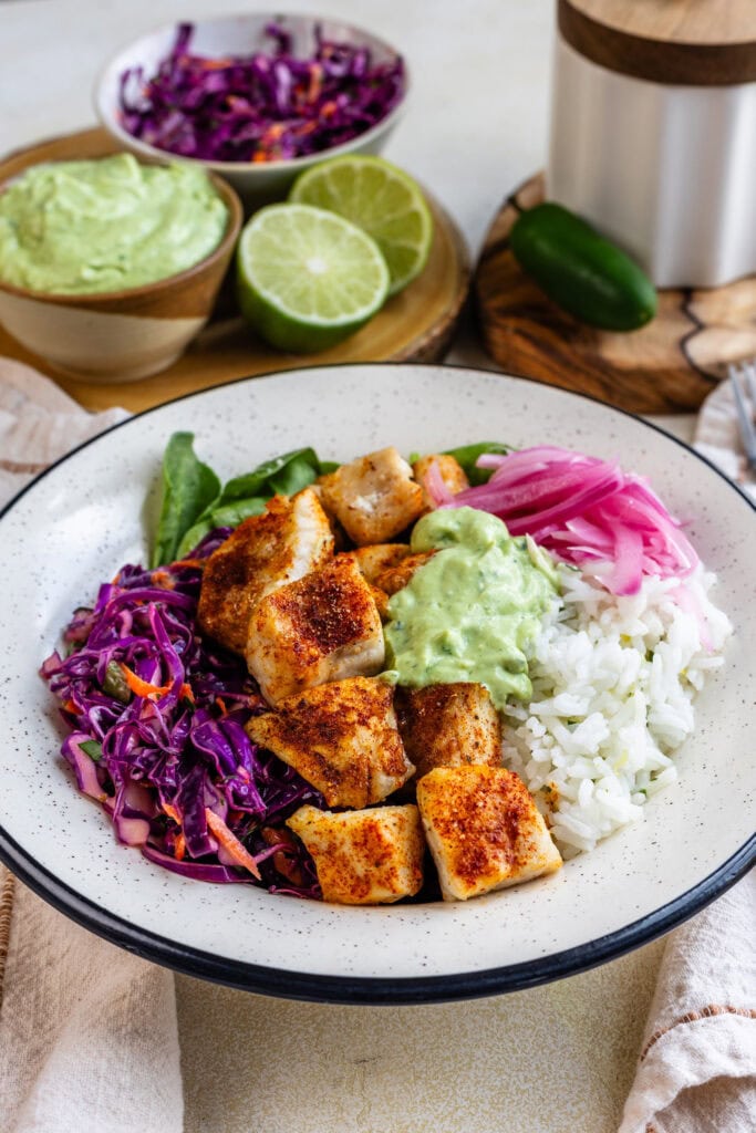 - Cilantro Lime Fish Taco Bowl with Mango Salsa