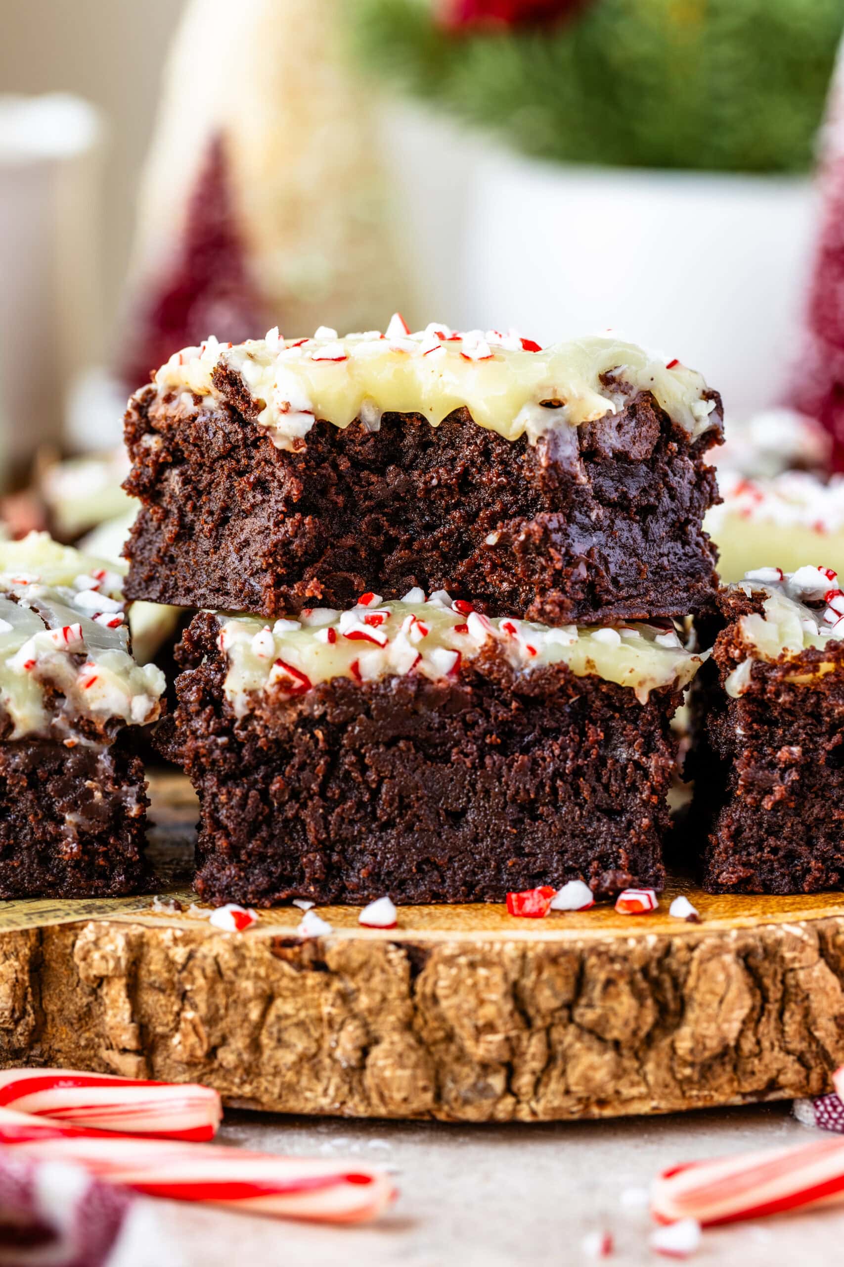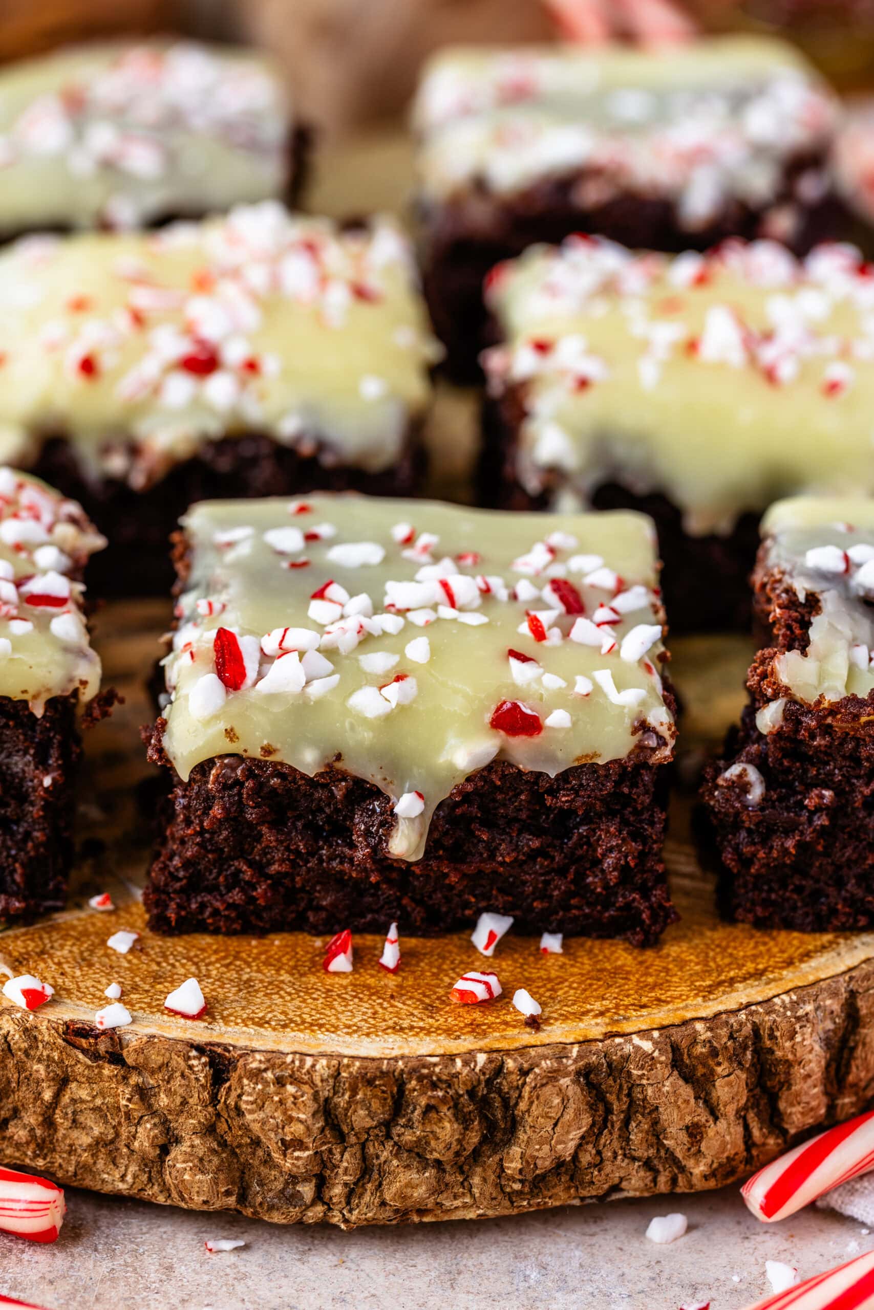 - Once the brownies have cooled down completely, spread the ganache over the top. Sprinkle with the peppermint candies. You can place the brownies back in the fridge for about 20 minutes so the top has a chance to set before slicing and serving.