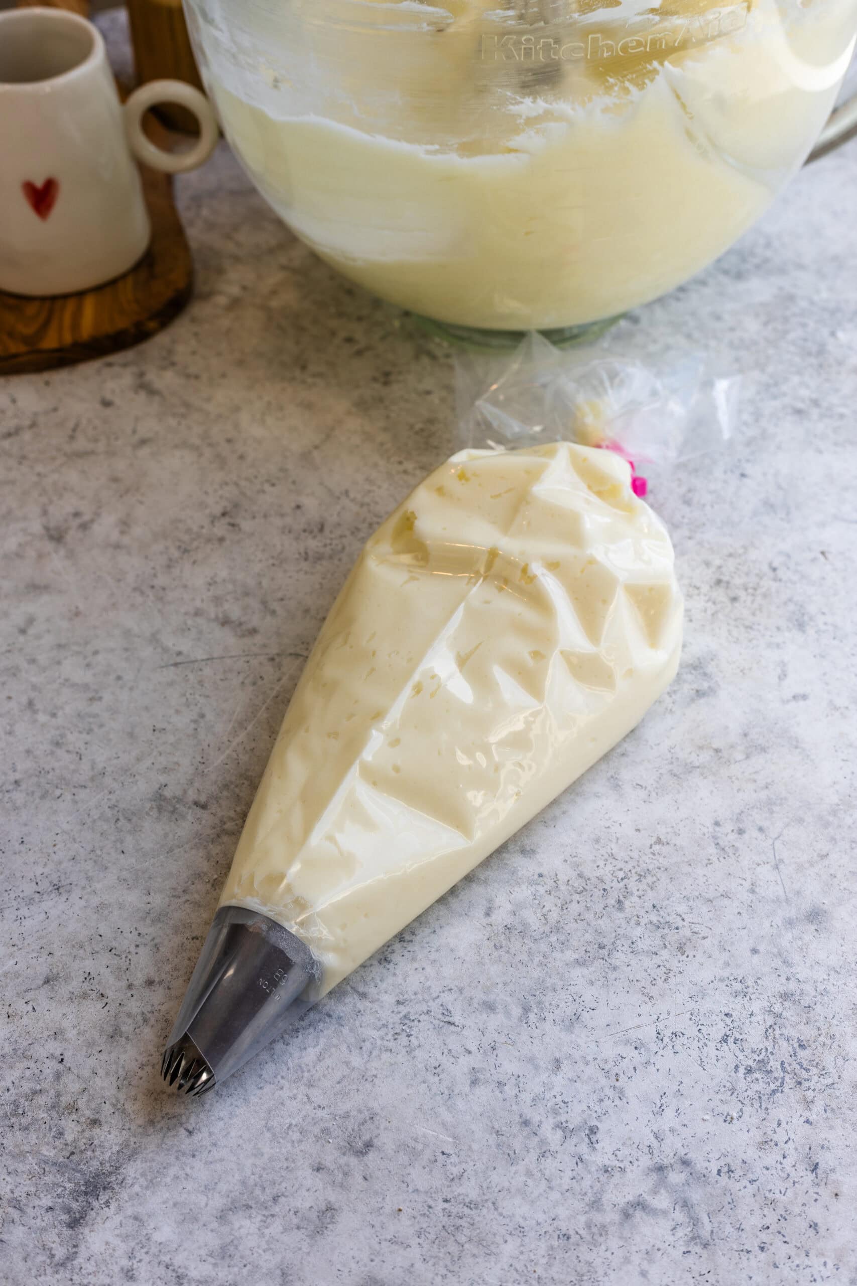 If the frosting feels too stiff, I add heavy cream or milk 1 tablespoon at a time until it loosens slightly. If it feels too soft, I add more powdered sugar from the remaining cup, a little at a time to get the right consistency.