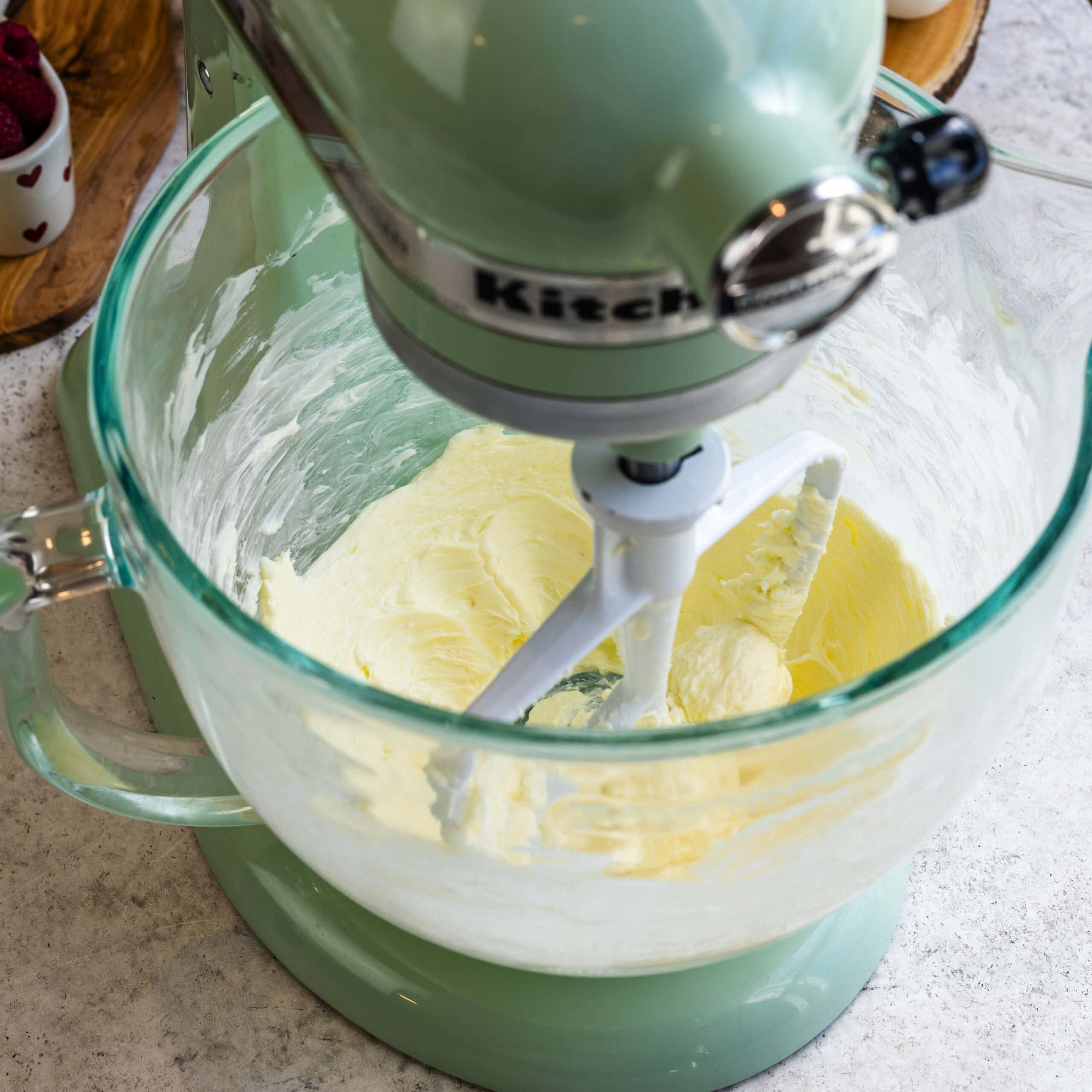 - Using a stand mixer with the paddle attachment, or a hand mixer, beat the butter for two minutes, until creamy.