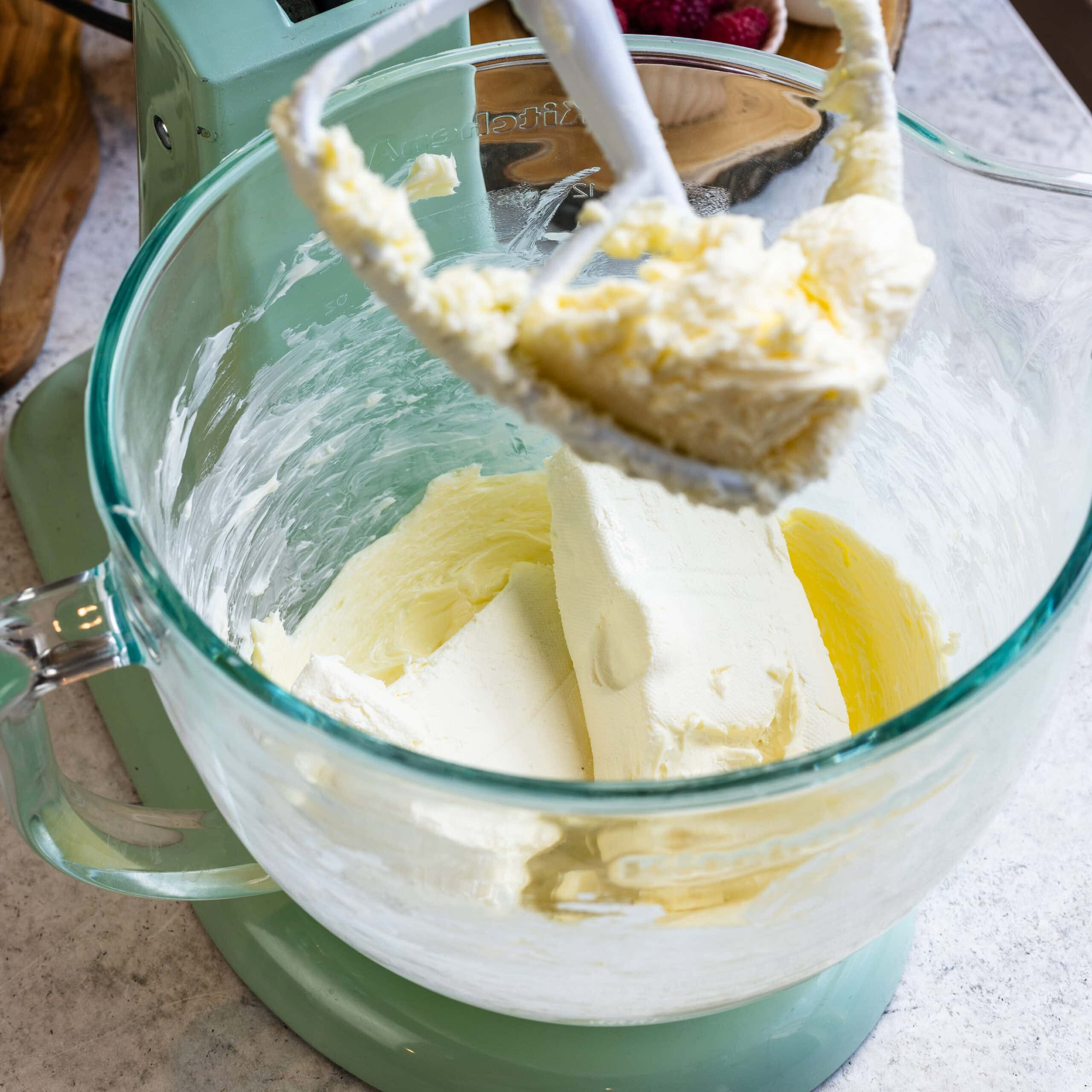 - Add the cream cheese to the bowl and beat for another 1-2 minutes, until the mixture is light and fluffy.