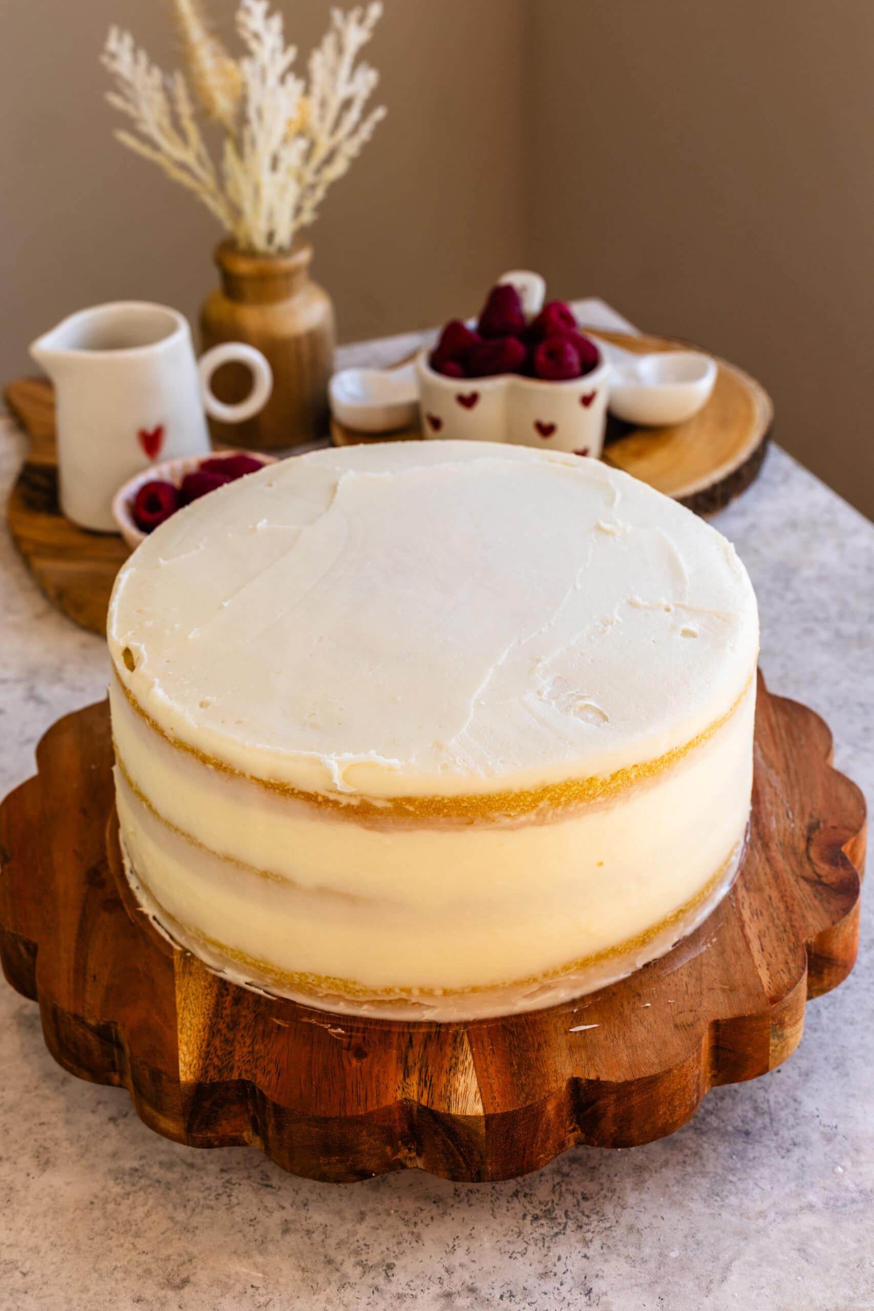 Why crumb coat the cake? Can I skip it? The crumb coat seals in loose crumbs and firms up the structure before the final layer of frosting. Because this frosting is on the softer side and the cake has a jam filling, crumb coating makes a big difference in how clean and stable the final cake looks. You can skip it, but I donโt recommend it if you want sharp edges and a smooth finish.