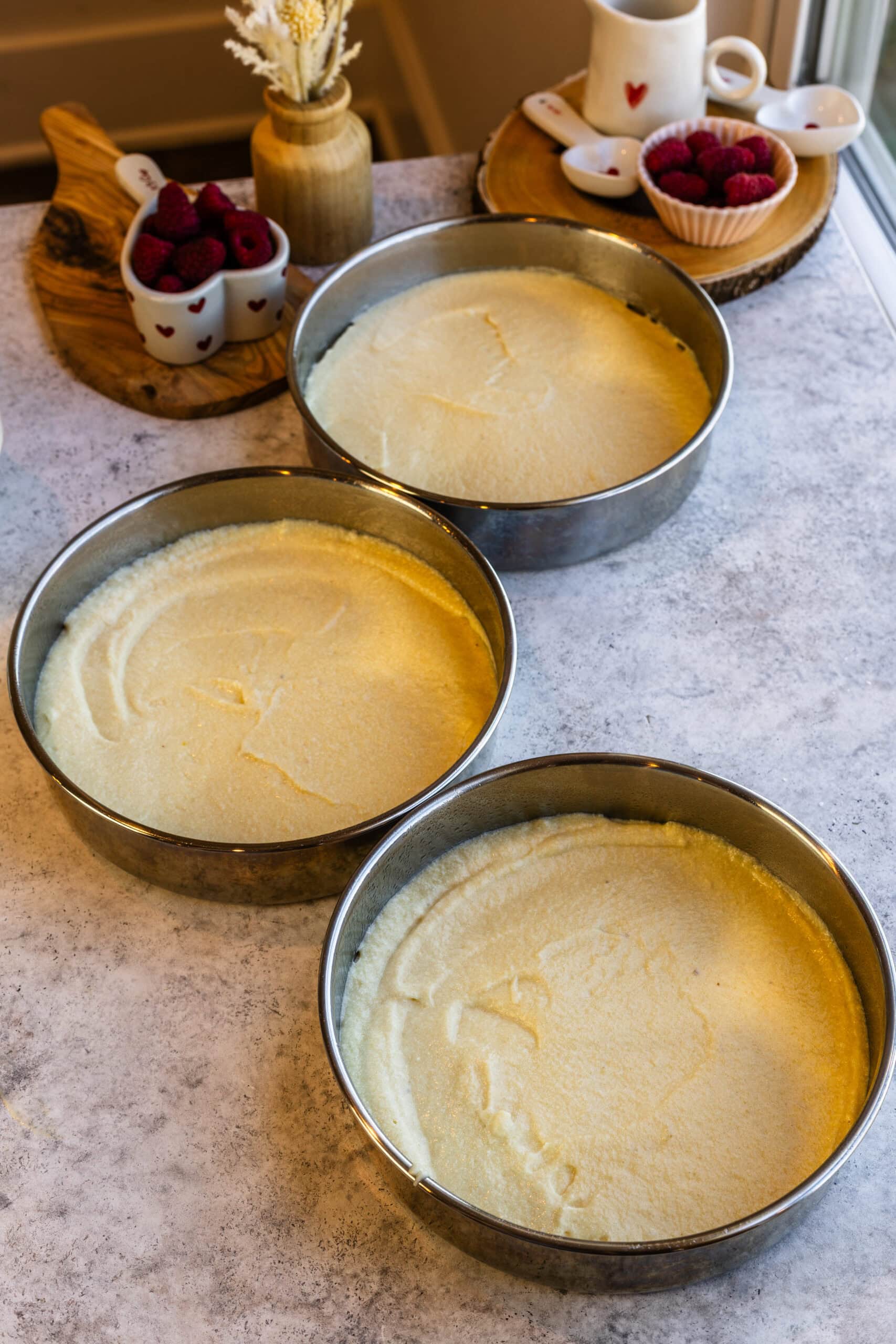 Repeat with the next cake layer. Syrup, frosting, jam. Donโt over fill the cake layers with jam, or it will ooze out, or make the cake slide.