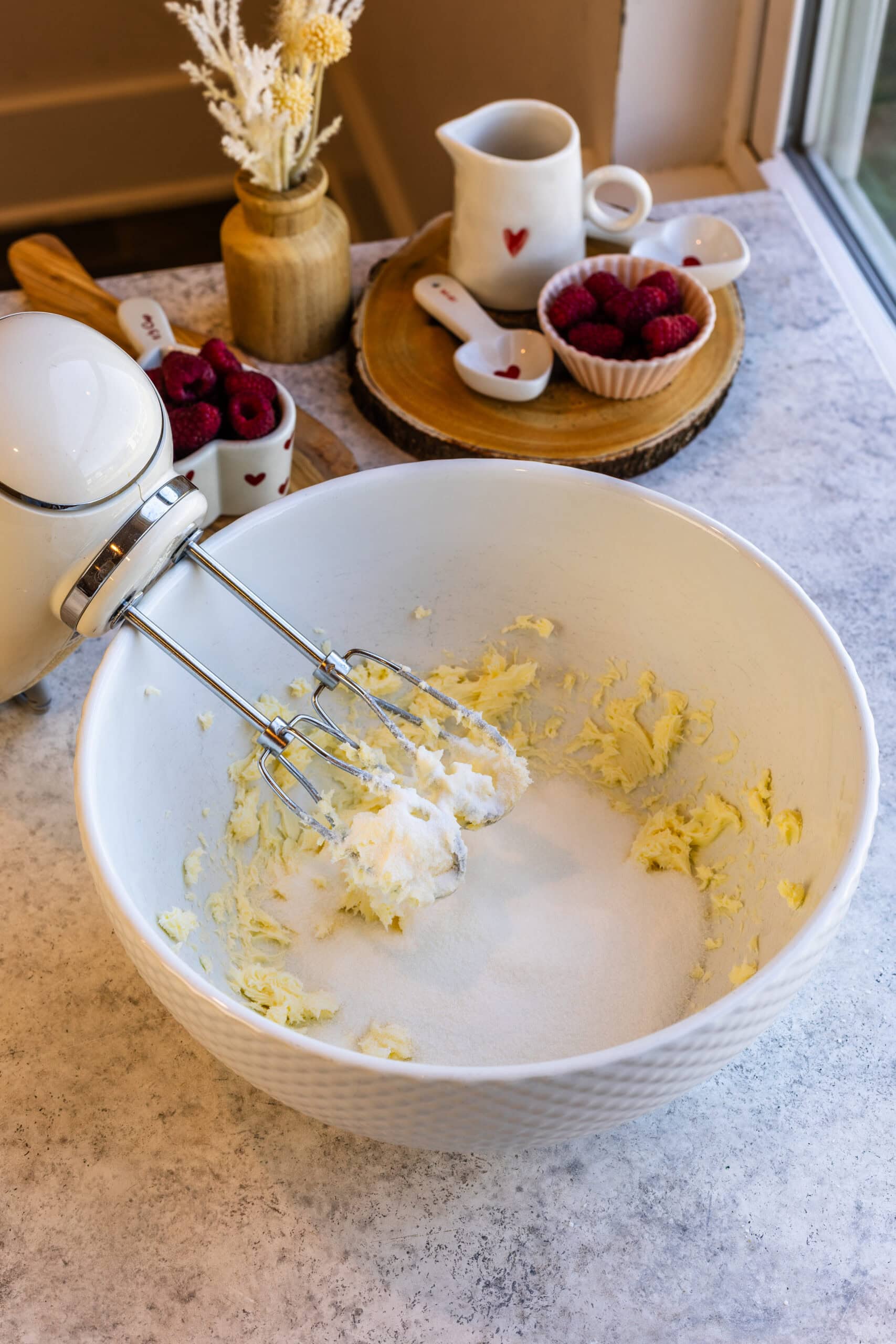 Beat the butter by itself for one minute. Then add the sugar and beat for another two minutes. I like to beat the butter by itself first to create and extra creamy texture.