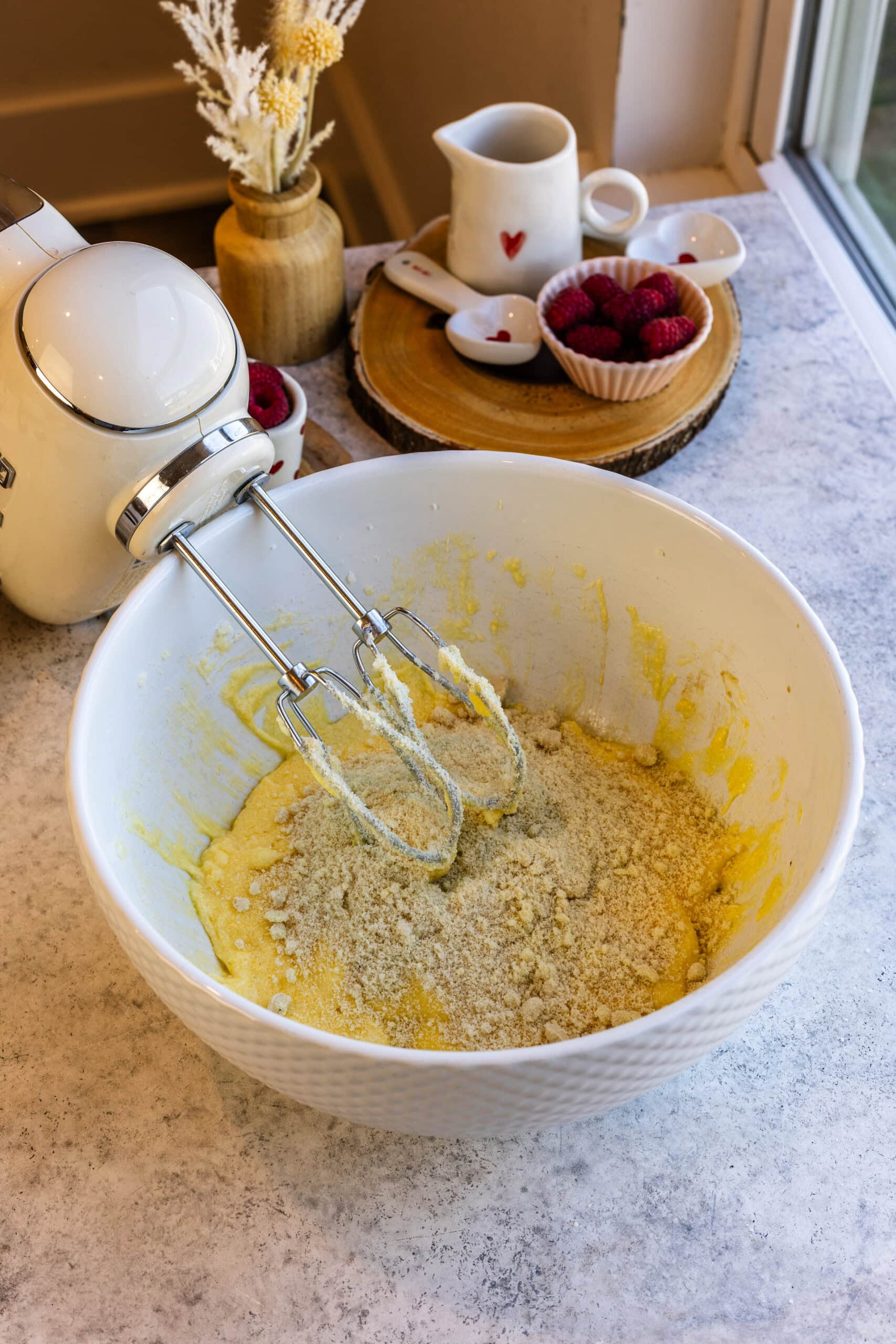 Add the almond flour and mix until combined. I like to use Blue Diamond almond flour for my baking.