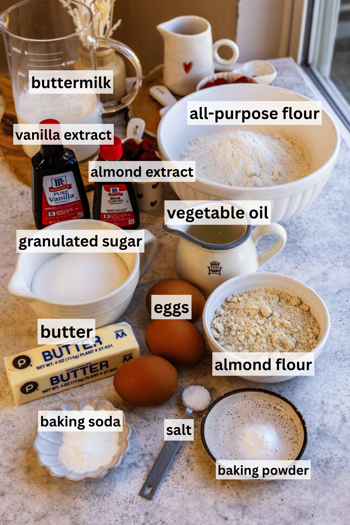 - Almond flour: We donโt use a lot, just enough to add moisture and depth of flavor without making the cake dense.