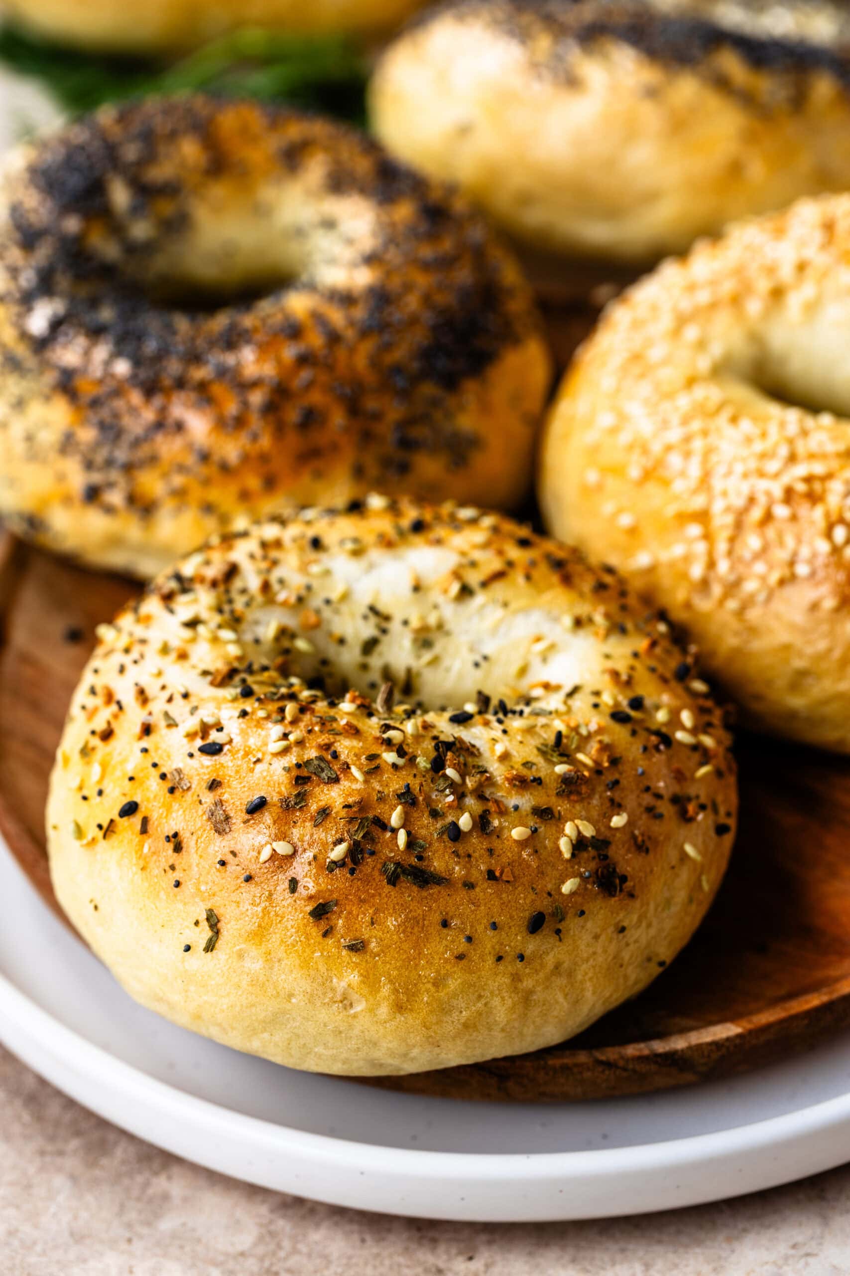 This bagel recipe is the result of years of practice and fine-tuning every step. I like bagels that are perfectly chewy and soft, with a fluffy interior and a crisp crust. When I worked at a deli, we made bagel dough twice a week, and I learned the techniques firsthand from the chef, along with plenty of lessons from my own mistakes. In this post, Iโm sharing all those tips and tricks so you can recreate authentic, bakery-style bagels at home.