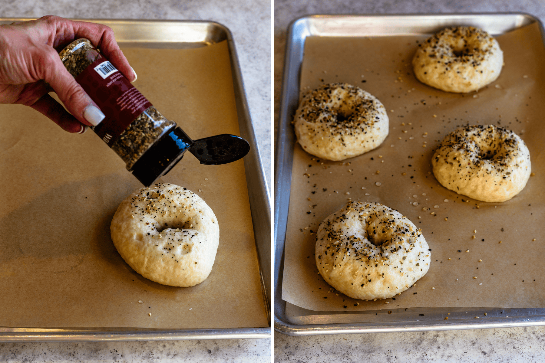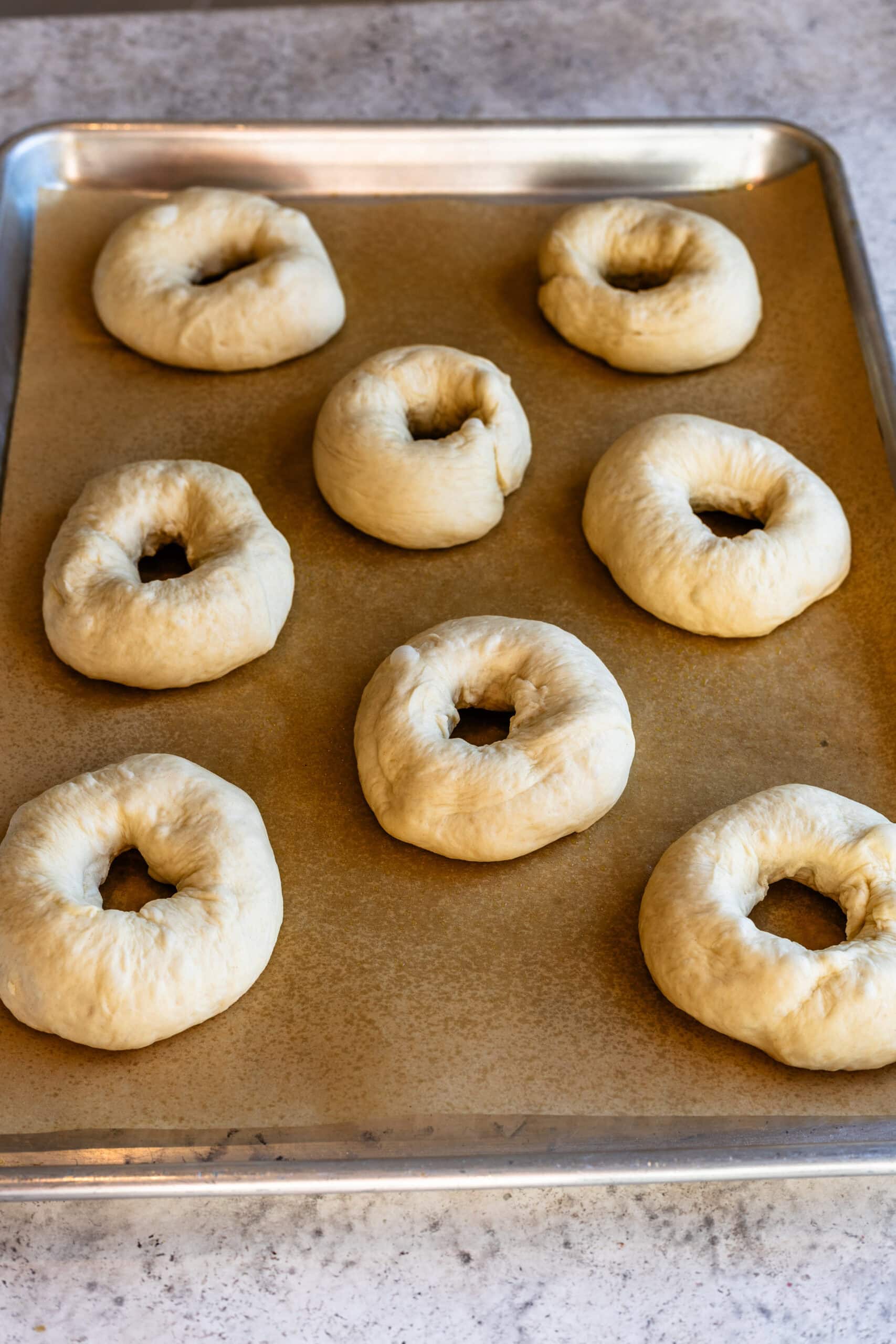 Place shaped bagels on a parchment-lined tray and let them rest for 5 minutes.