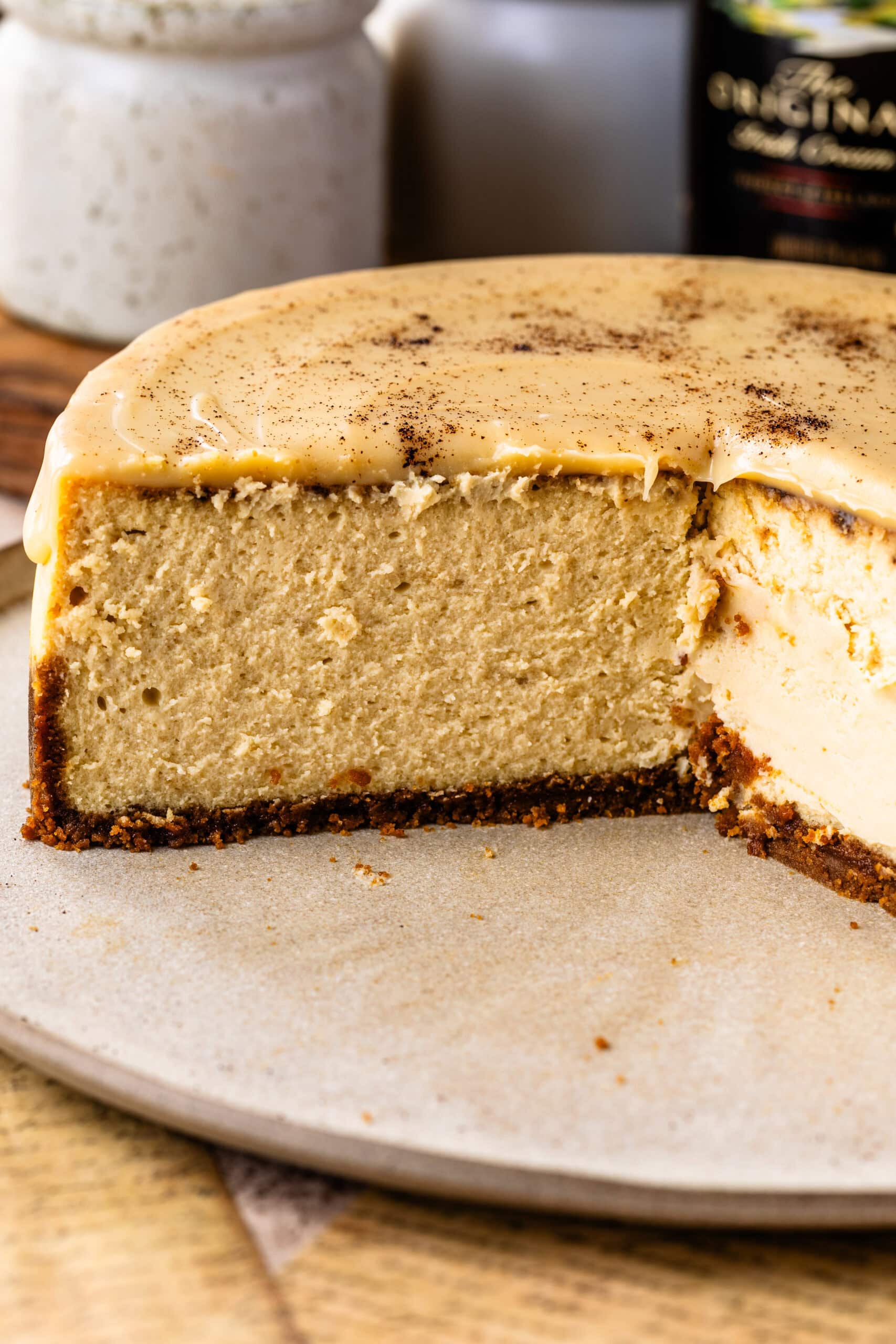 Baileys Irish Cream: The Baileys adds a creamy coffee-caramel note that works perfectly with the white chocolate and Biscoff crust.