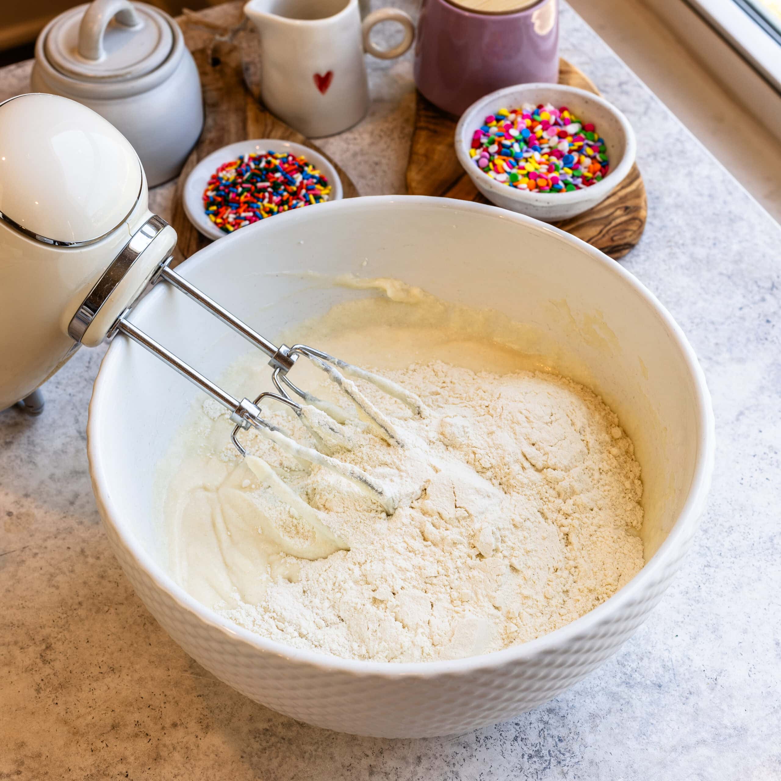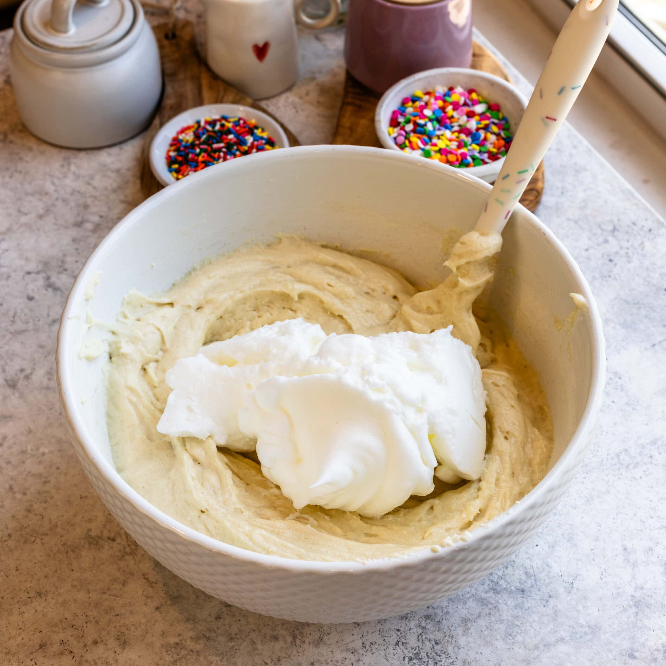I fold in the sprinkles at the very end, using a spatula. Again, be careful not to overmix the batter.