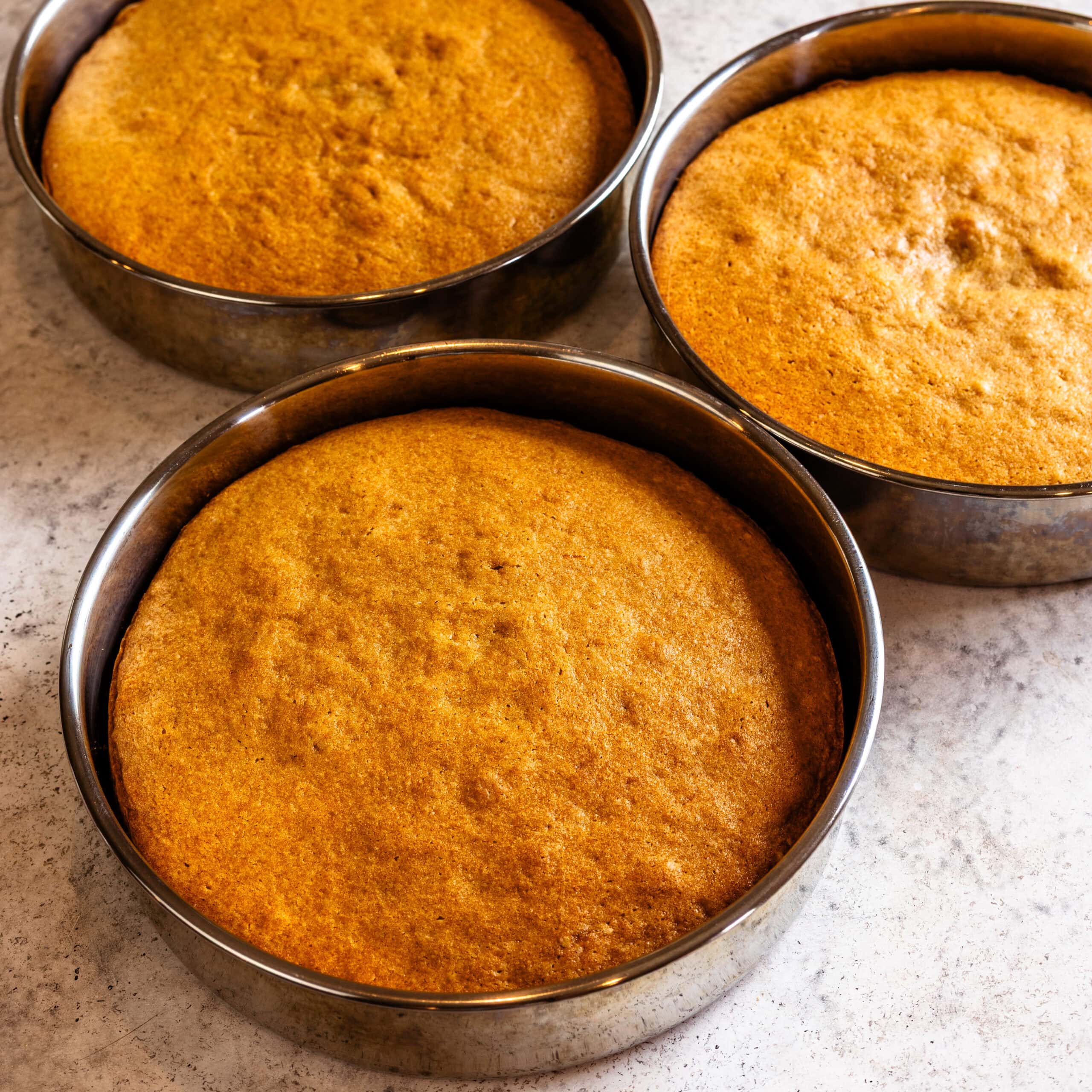 • Bake the cakes in the pre-heated oven for 30 to 35 minutes, until the cake springs back when touched on top, and the edges are golden, or a toothpick inserted in the cake comes out clean.