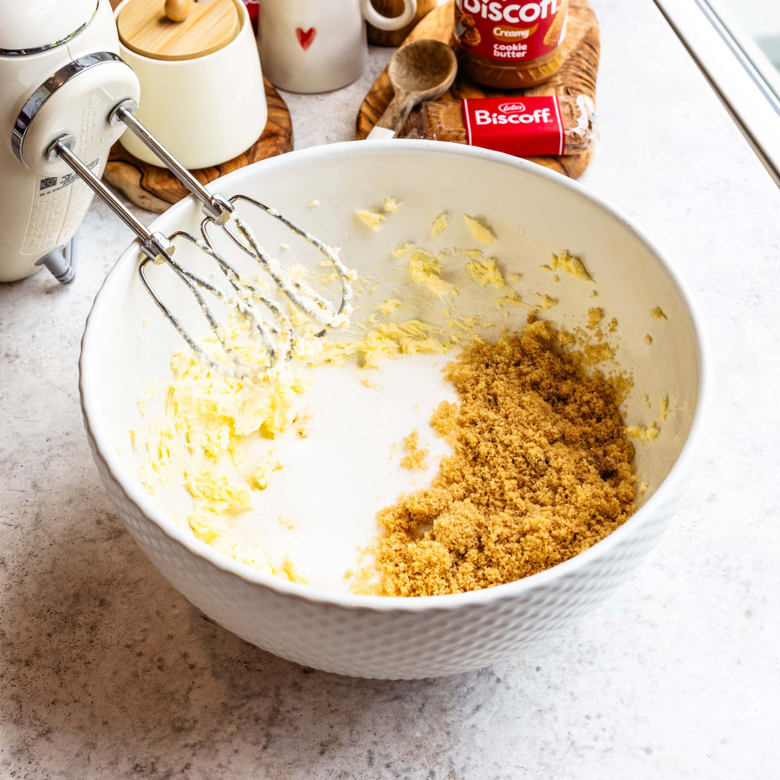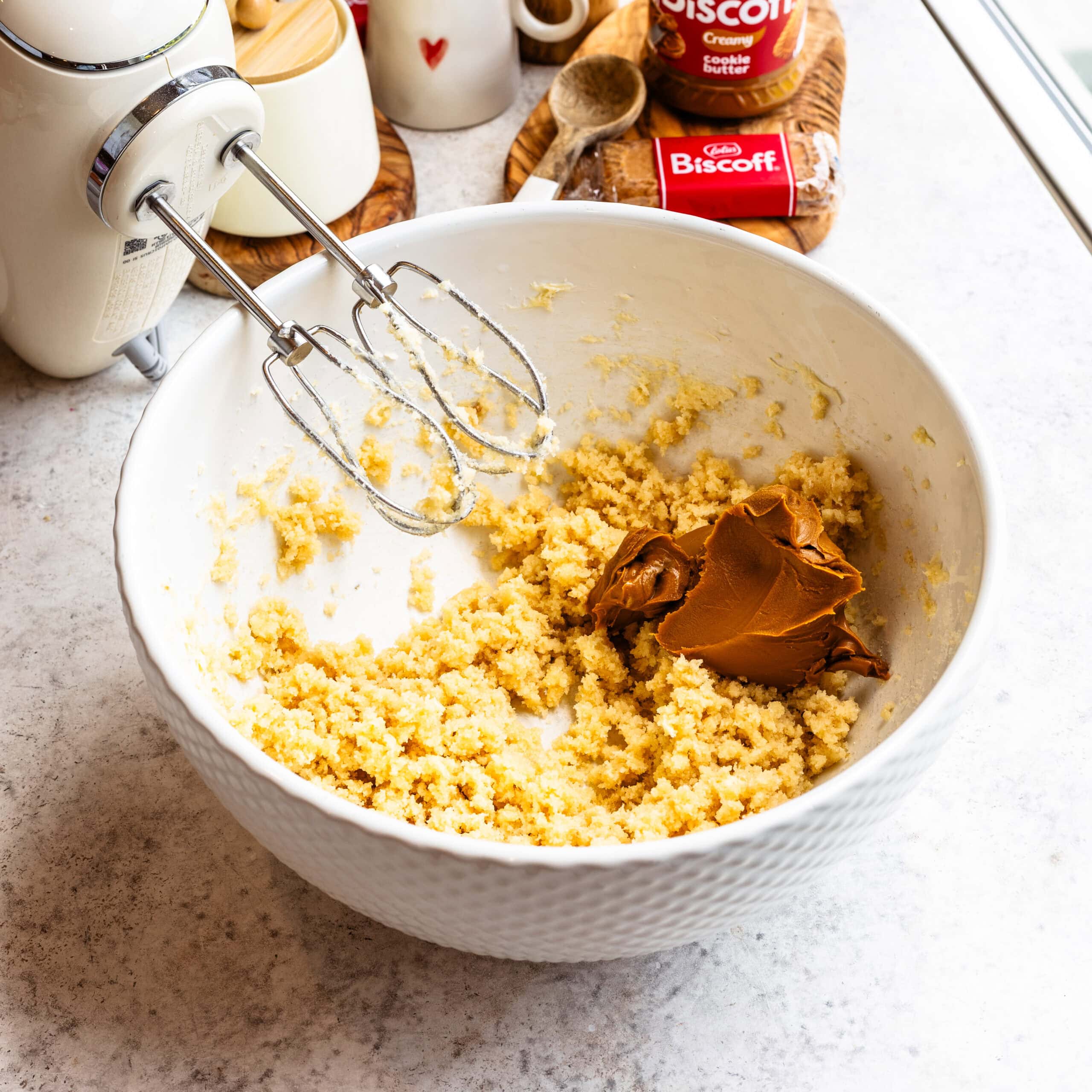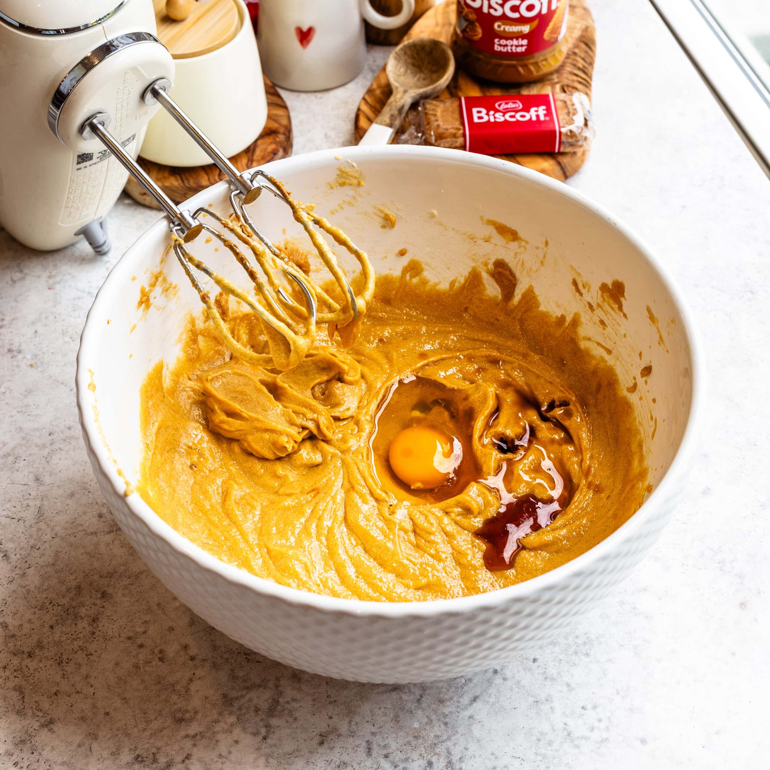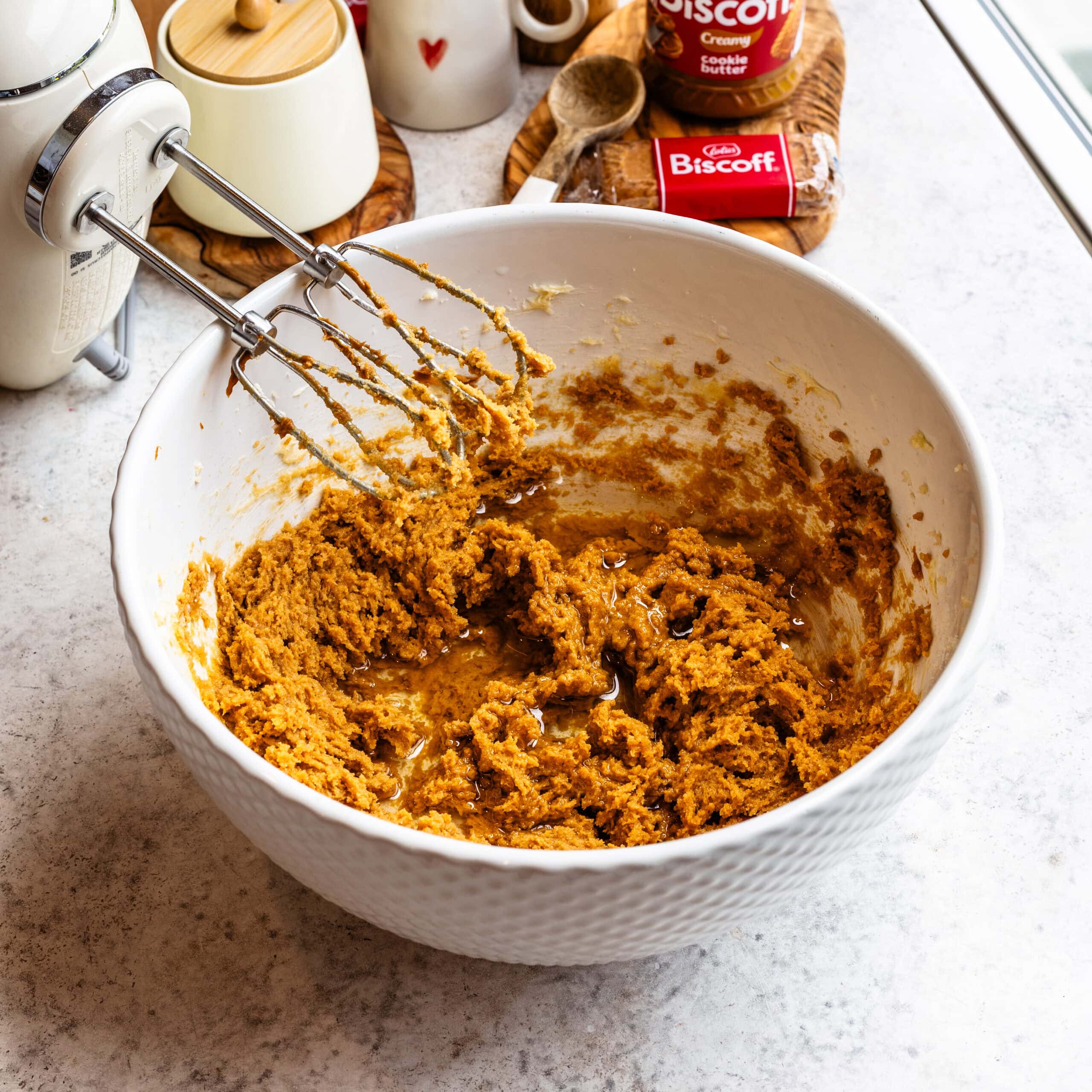 Brown sugar + granulated sugar: The brown sugar adds moisture and depth, which pairs really well with Biscoff.