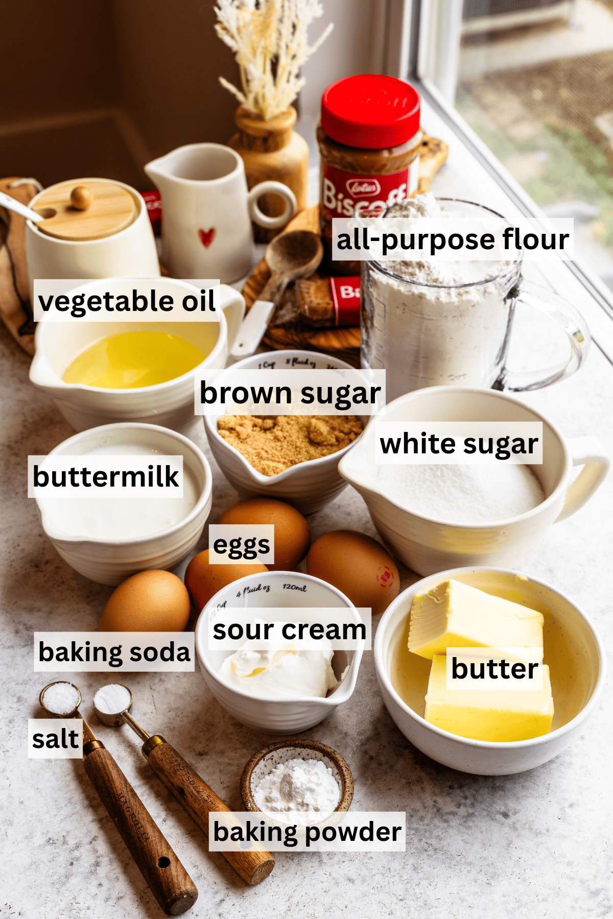 Biscoff cookie butter: I use it in the batter, filling, and frosting so the flavor actually comes through clearly. This is the key for any biscoff dessert. I use for recipes like my Biscoff Cheesecake and Biscoff Blondies.