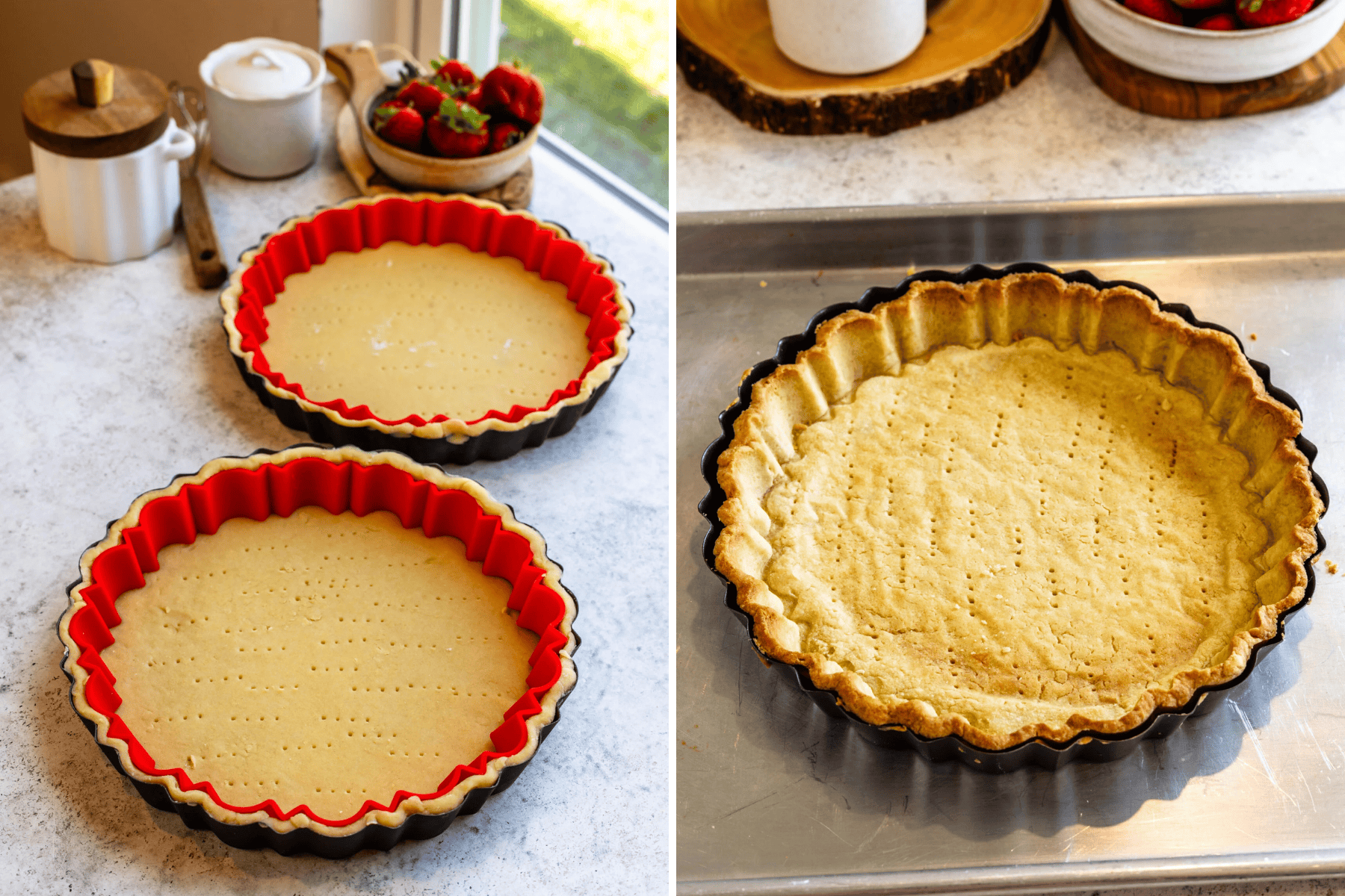 - Make the tart crust recipe (here). You have to make it at least 3 hours before baking/assembling the tart, because the dough needs to chill in the fridge before being rolled out.