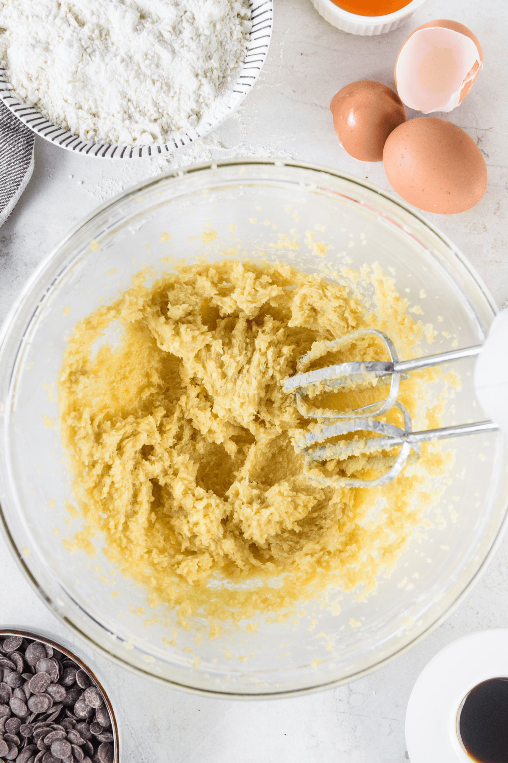 - Add the brown sugar and granulated sugar. Beat for another 2 minutes until light in color and fluffy.