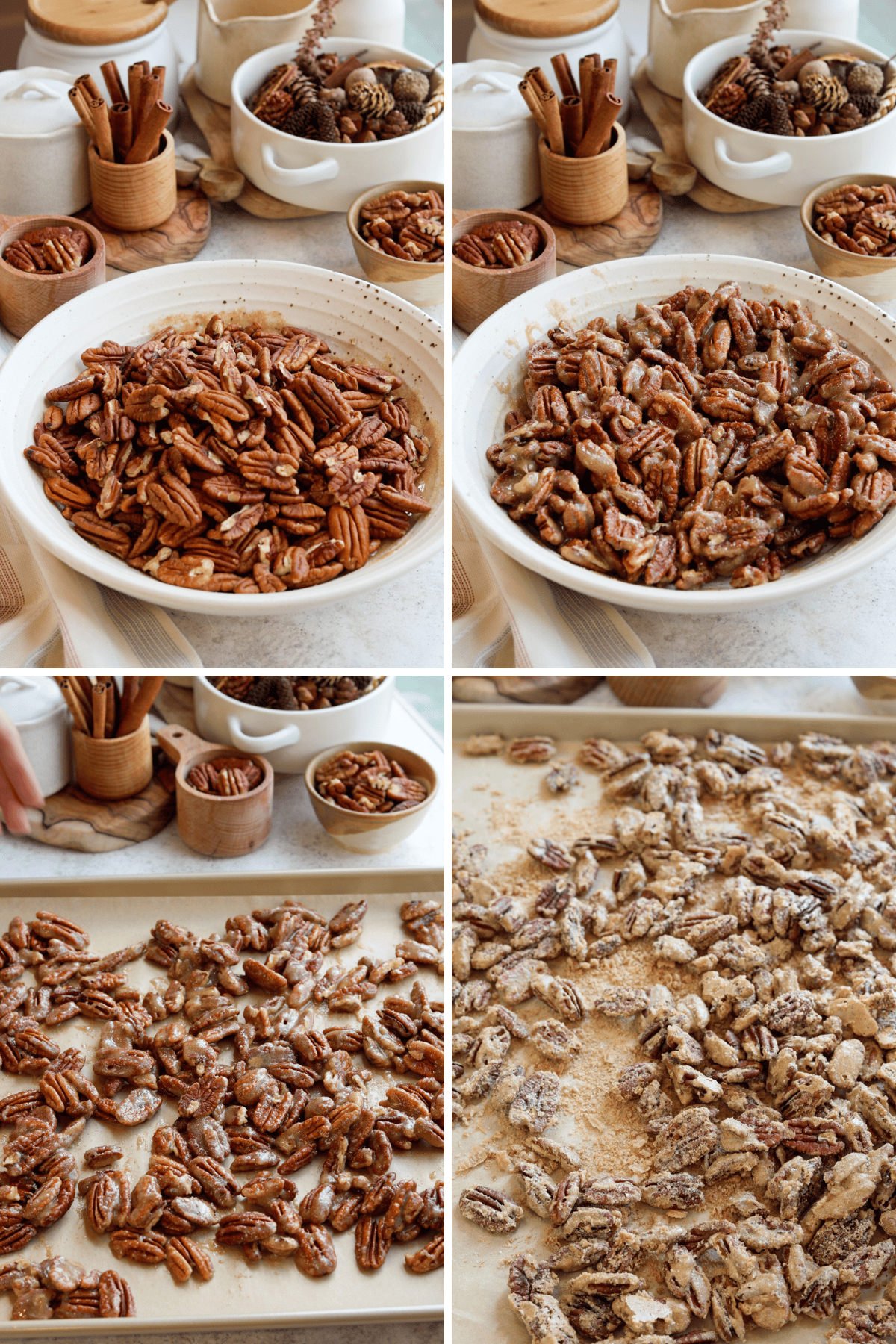 Once done, remove the pan from the oven and allow the pecans to cool completely. Theyโll continue to crisp as they reach room temperature, developing that addictive, crunchy coating you canโt resist.