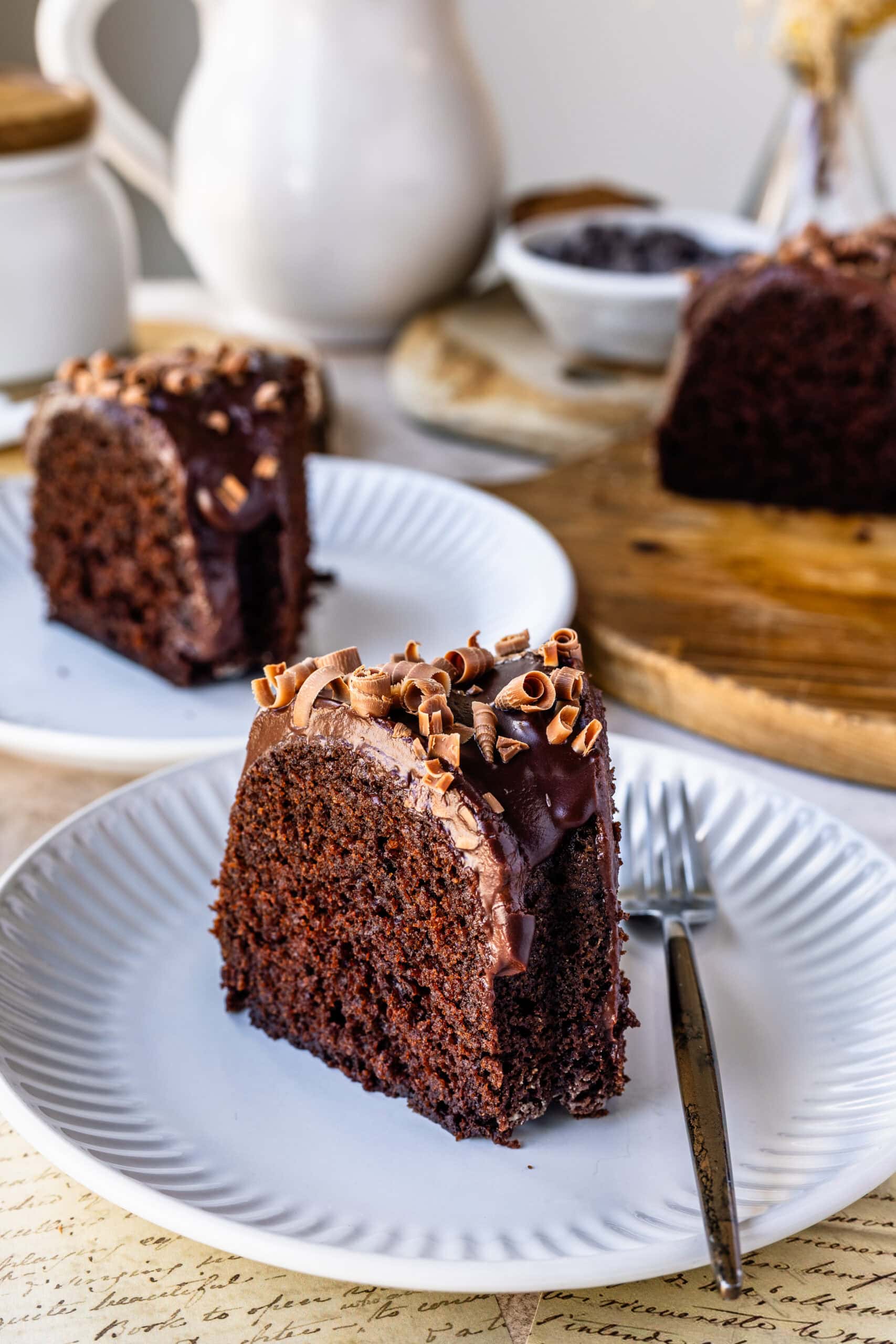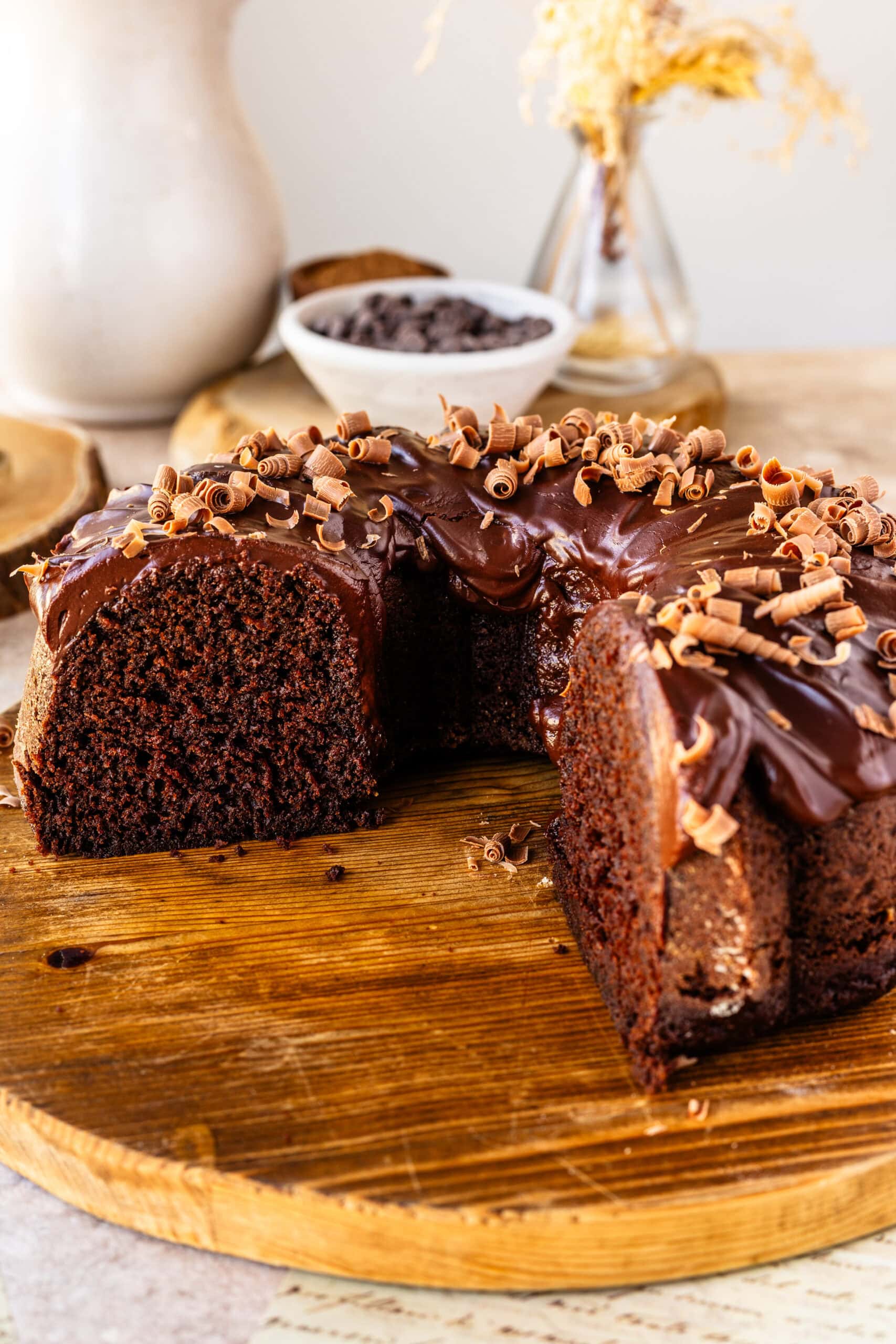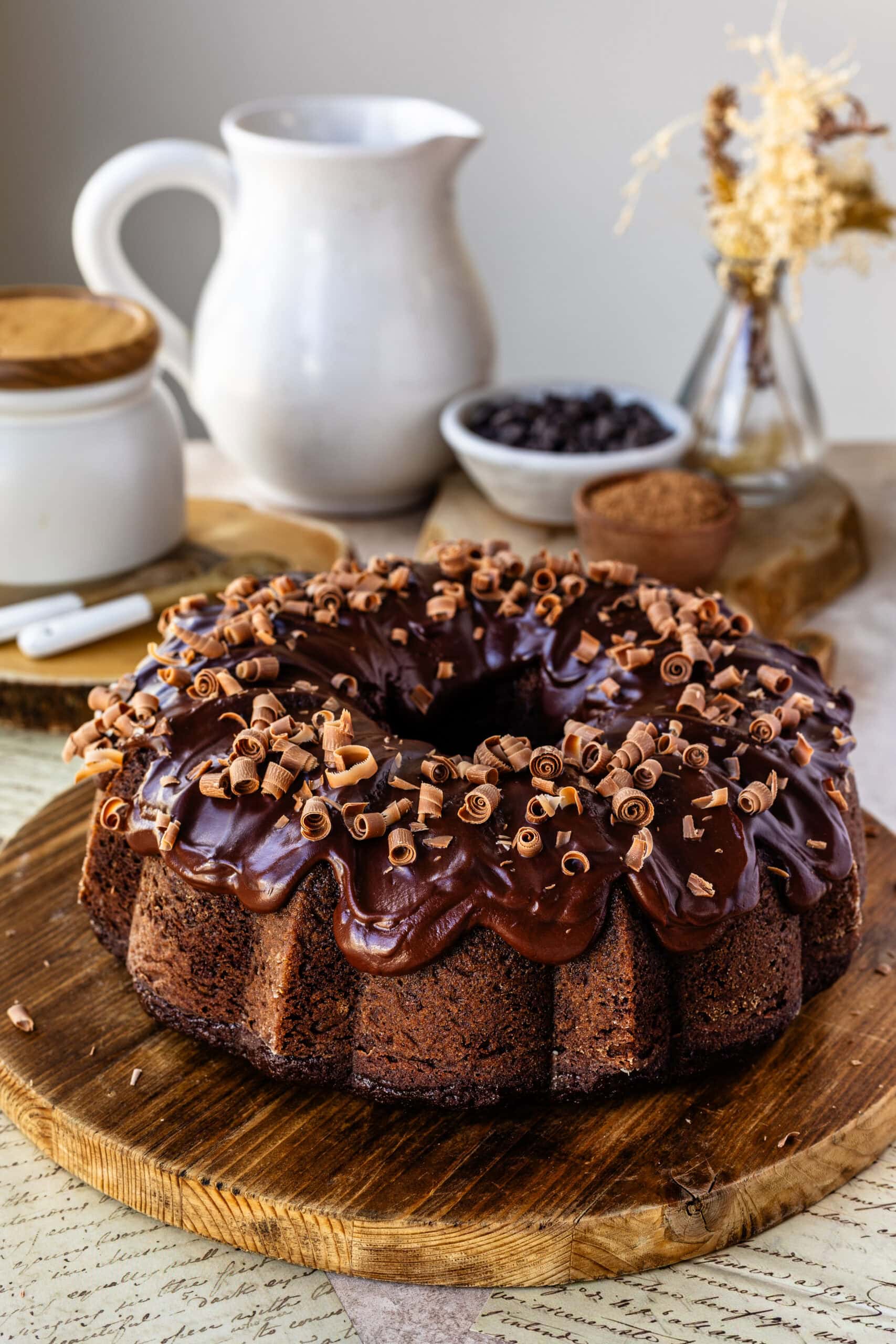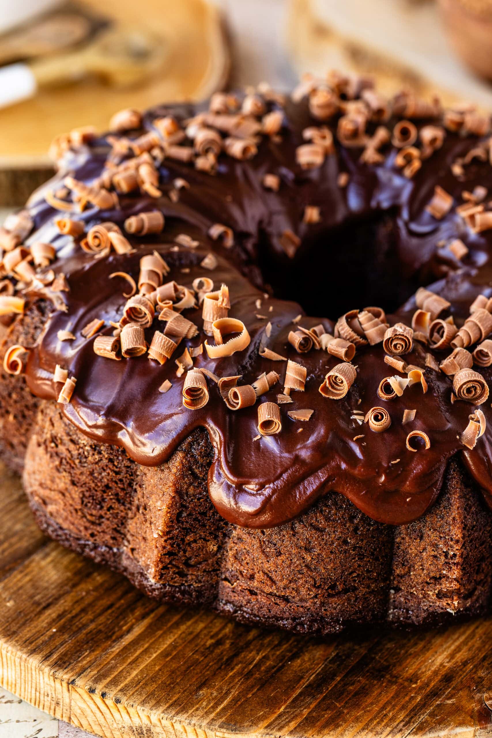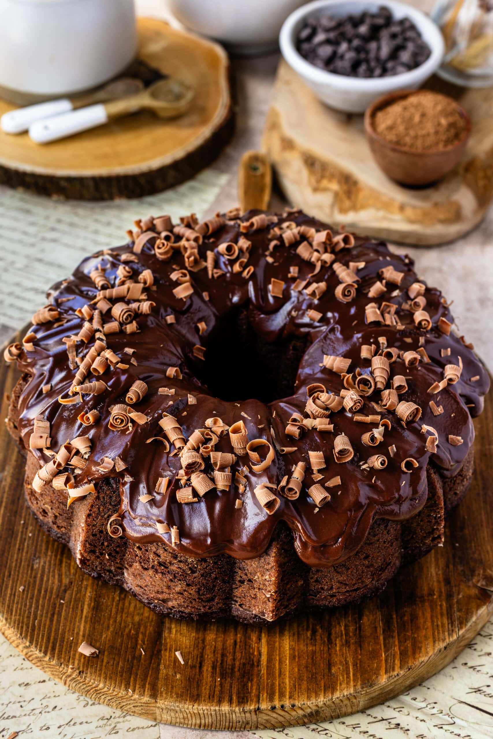Store your Chocolate Bundt Cake in an airtight container at room temperature on the counter for up to 2 days, or refrigerate for up to 5 days. Bring it to room temperature before serving to restore its soft texture. If frozen, let it thaw overnight in the refrigerator, then bring to room temp before enjoying. The ganache will firm up slightly when chilled but softens beautifully once it warms.
