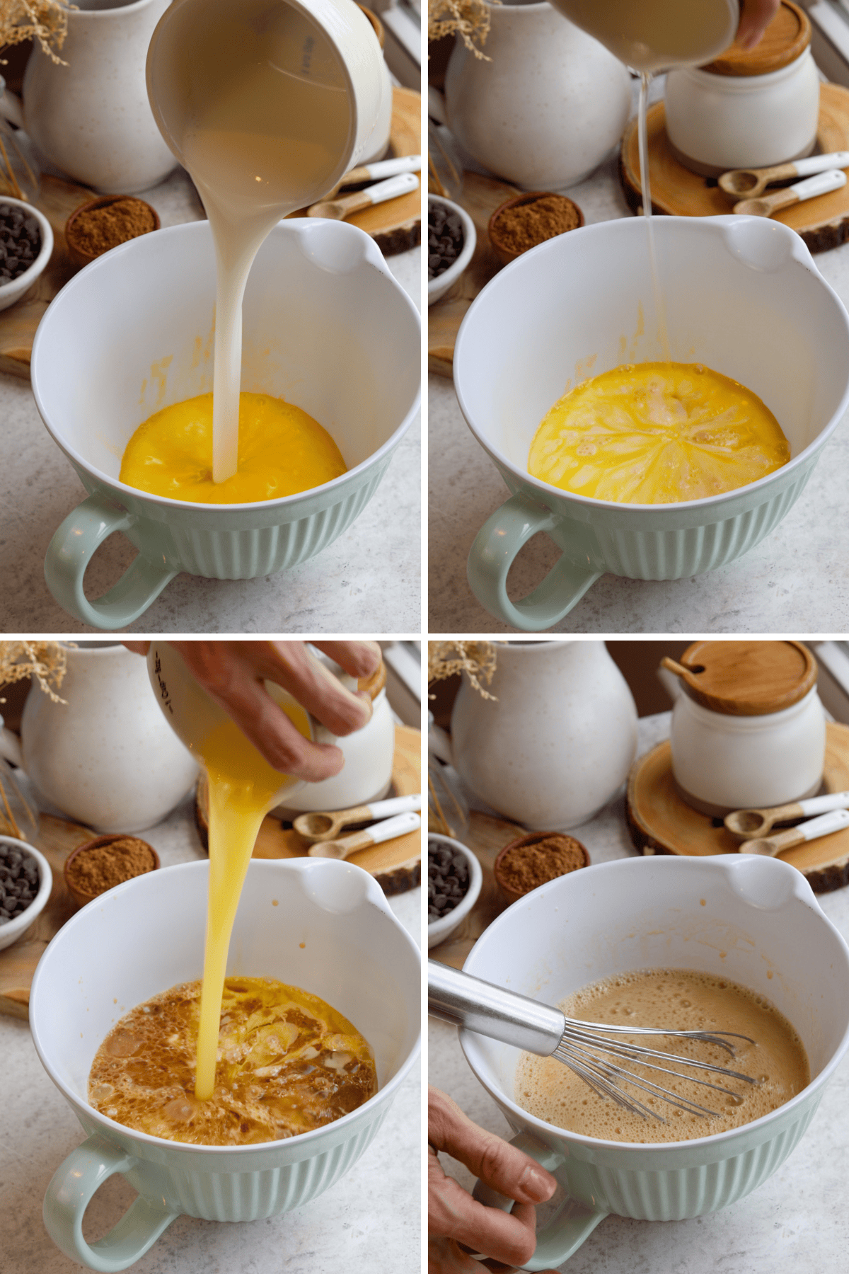 - Pour the wet ingredients over the dry. Whisk until combined.