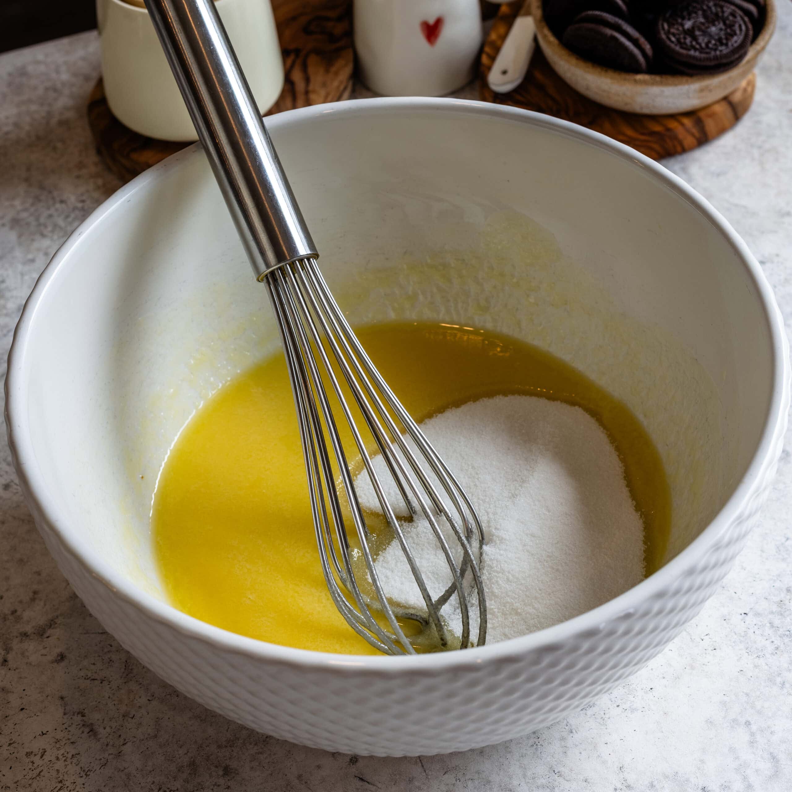 Whisk in the sugar. The mixture might look a bit separated at this stageโ€”thatโ€™s normal.