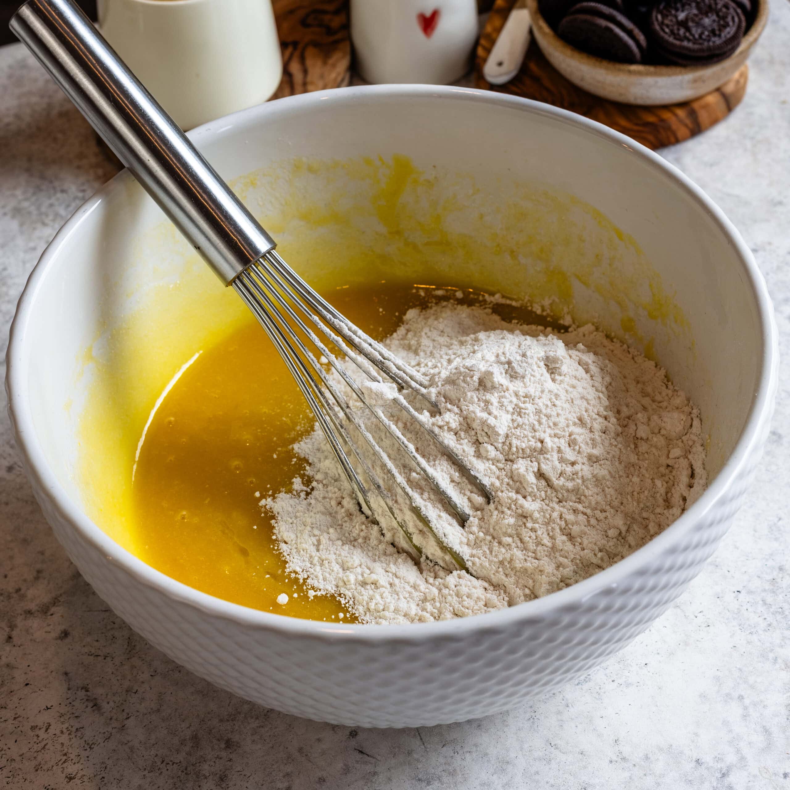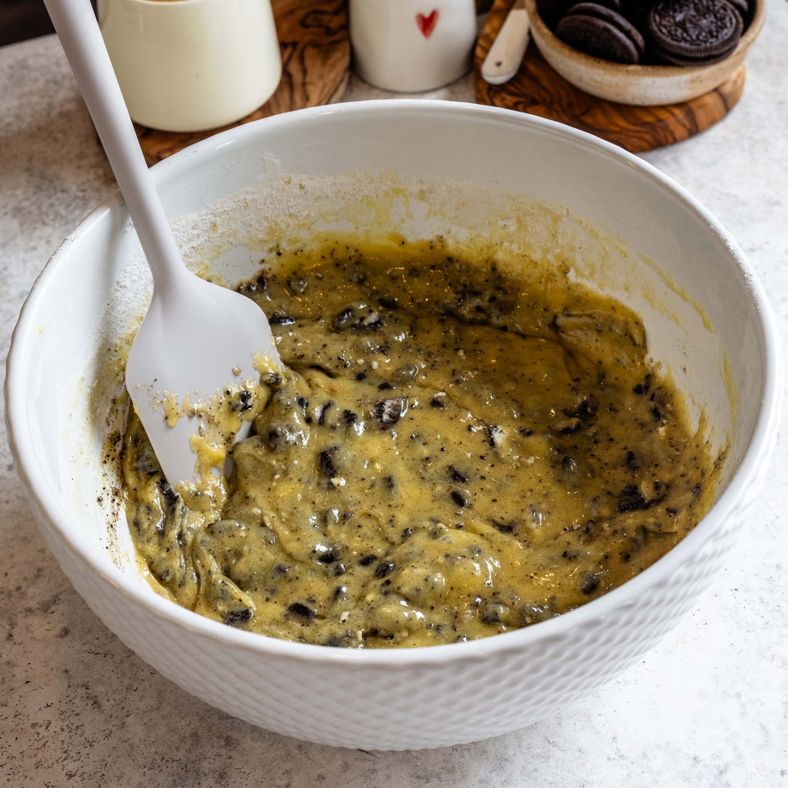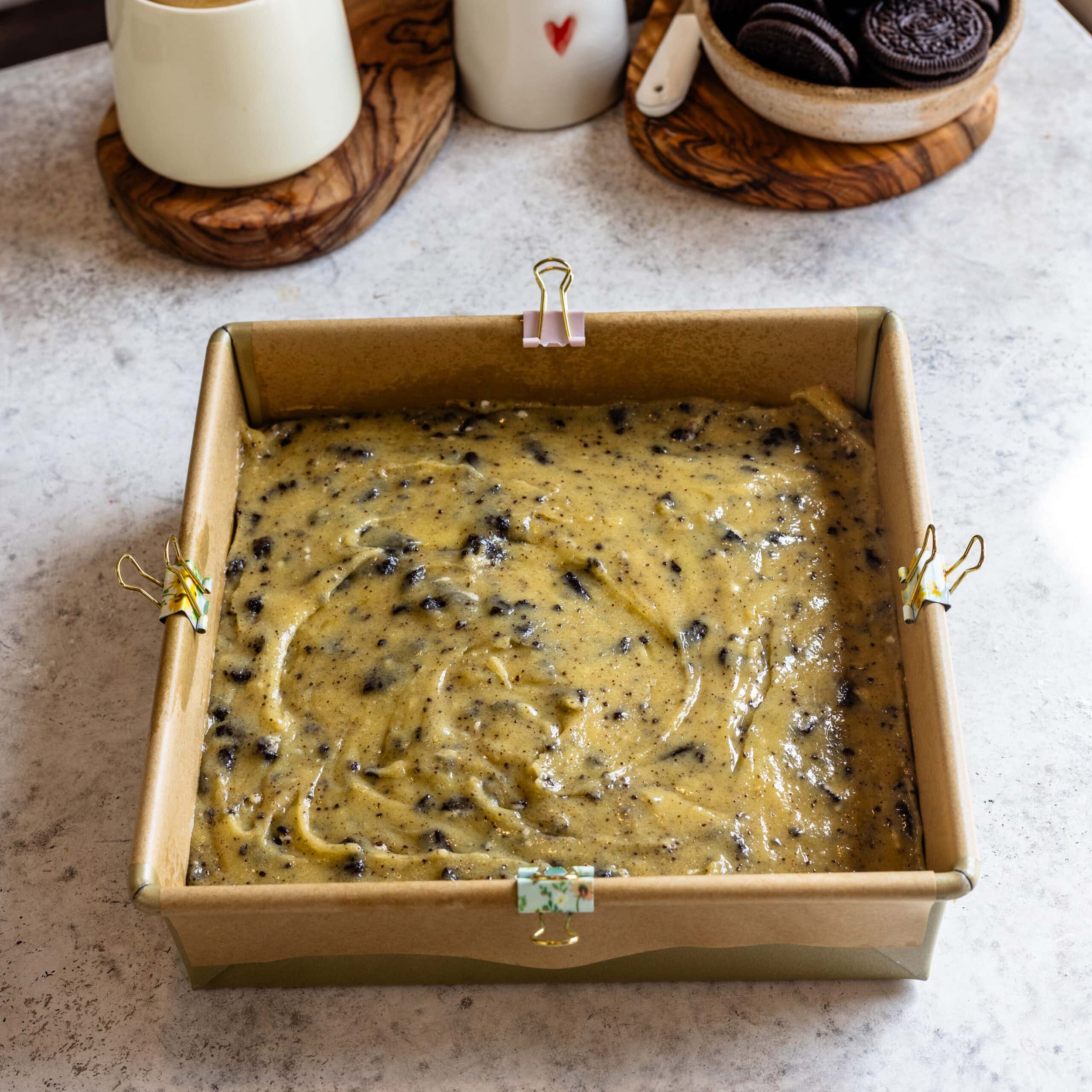 Oreos: I chop them fairly small so they distribute evenly. Bigger chunks can create gaps in the batter. I love using Oreos in many of my bakes, like Oreo Cheesecake or Cookies and Cream Cake.
