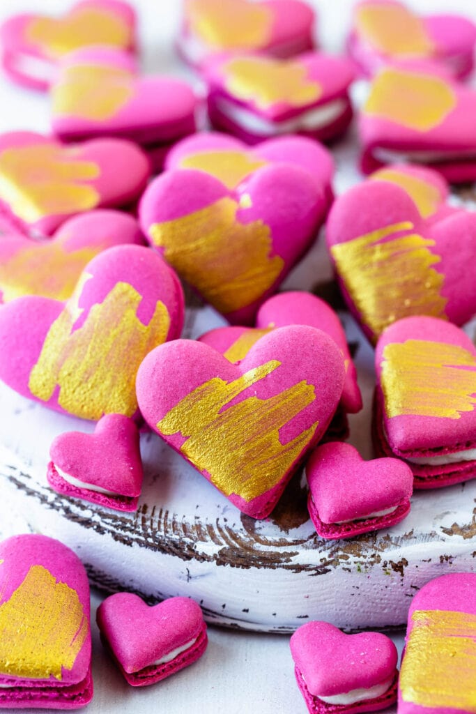 I am excited for Valentineโs Day and it shows! But these Heart Shaped Macarons are also perfect for Motherโs Day, Anniversary, Engagement Parties, and any other celebrations that involve love and hearts!