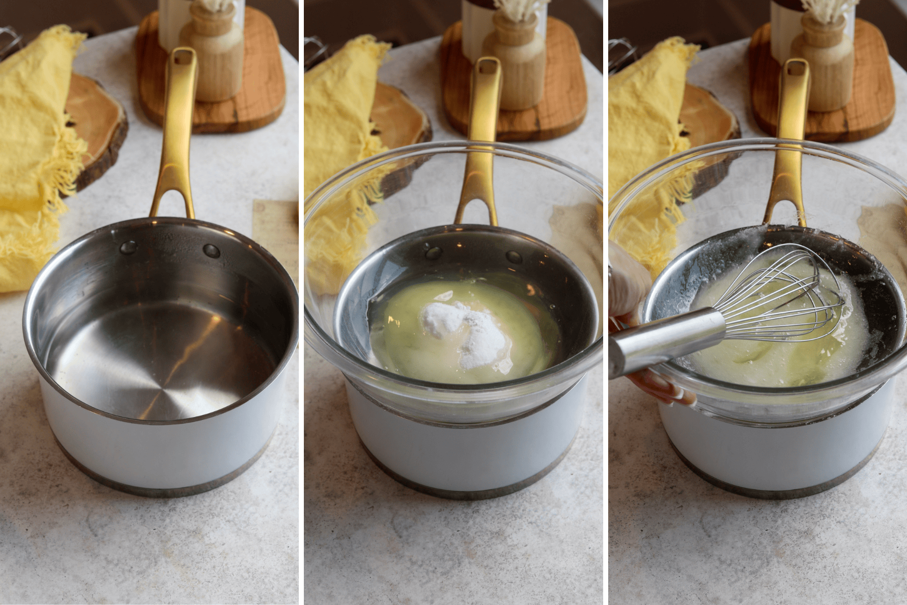 - Fill a small pot with 2 inches of water. Place it over medium heat. Bring to a gentle simmer.