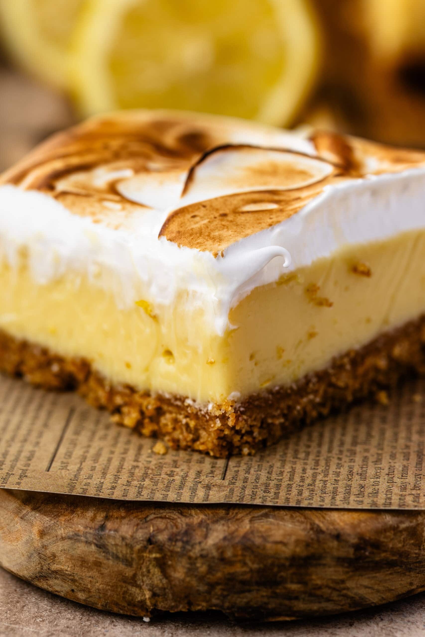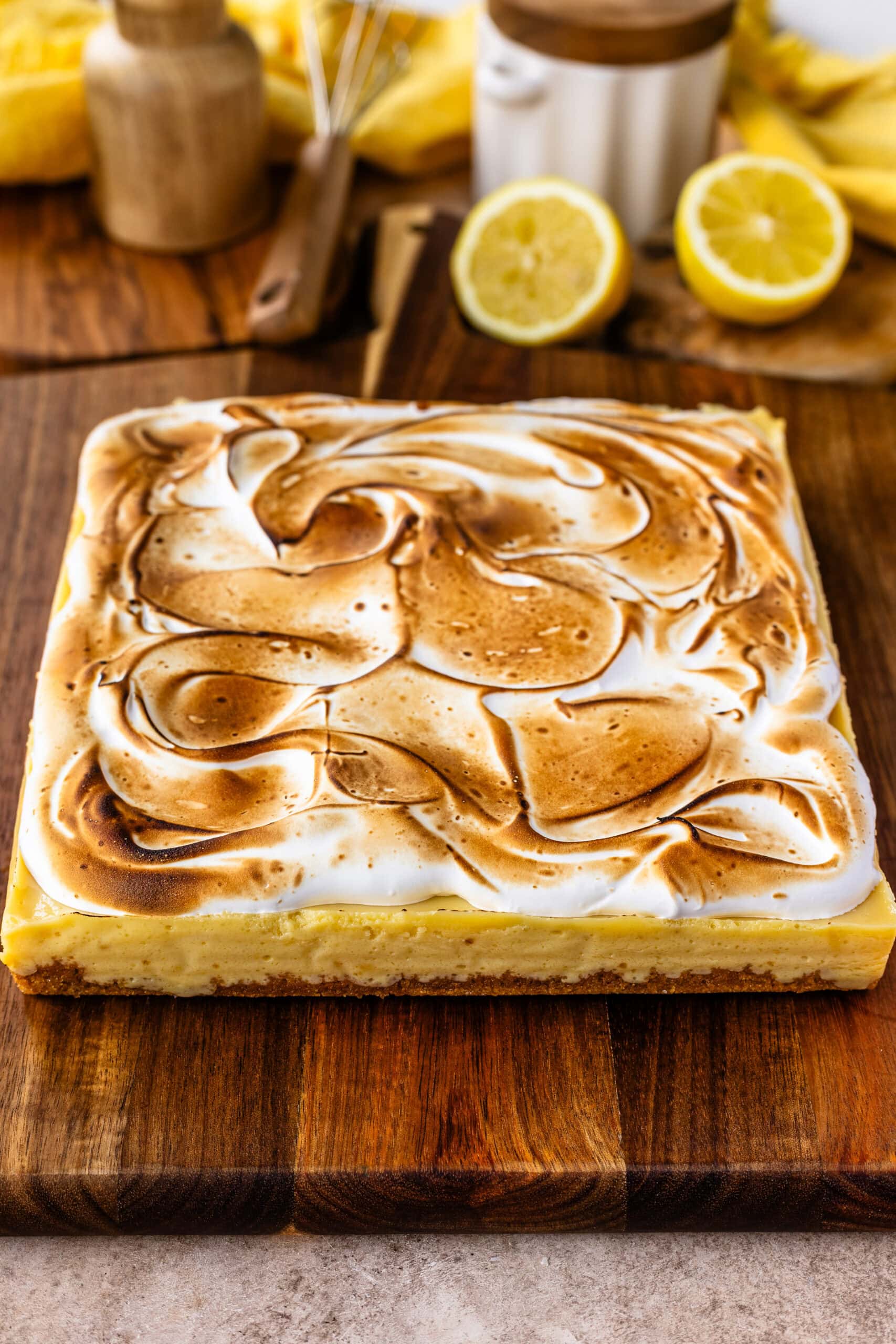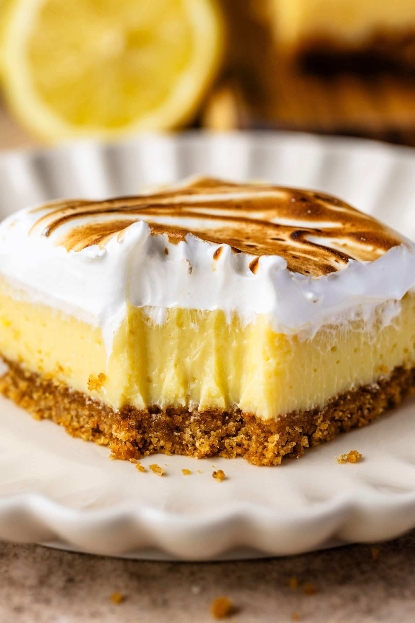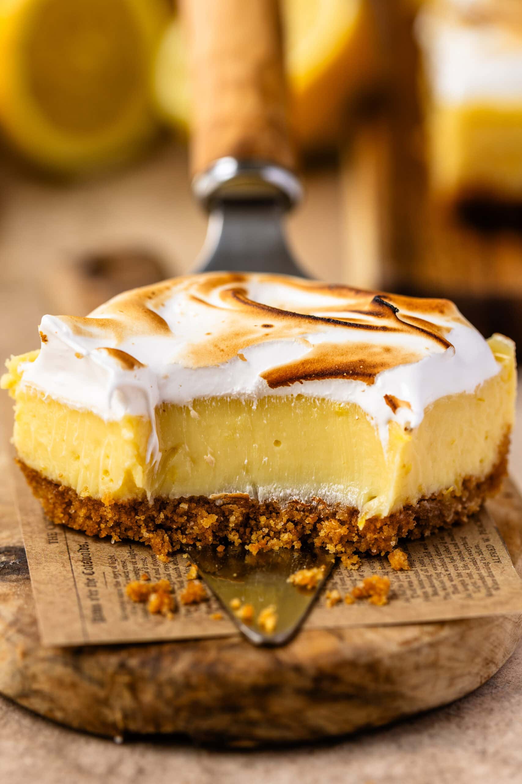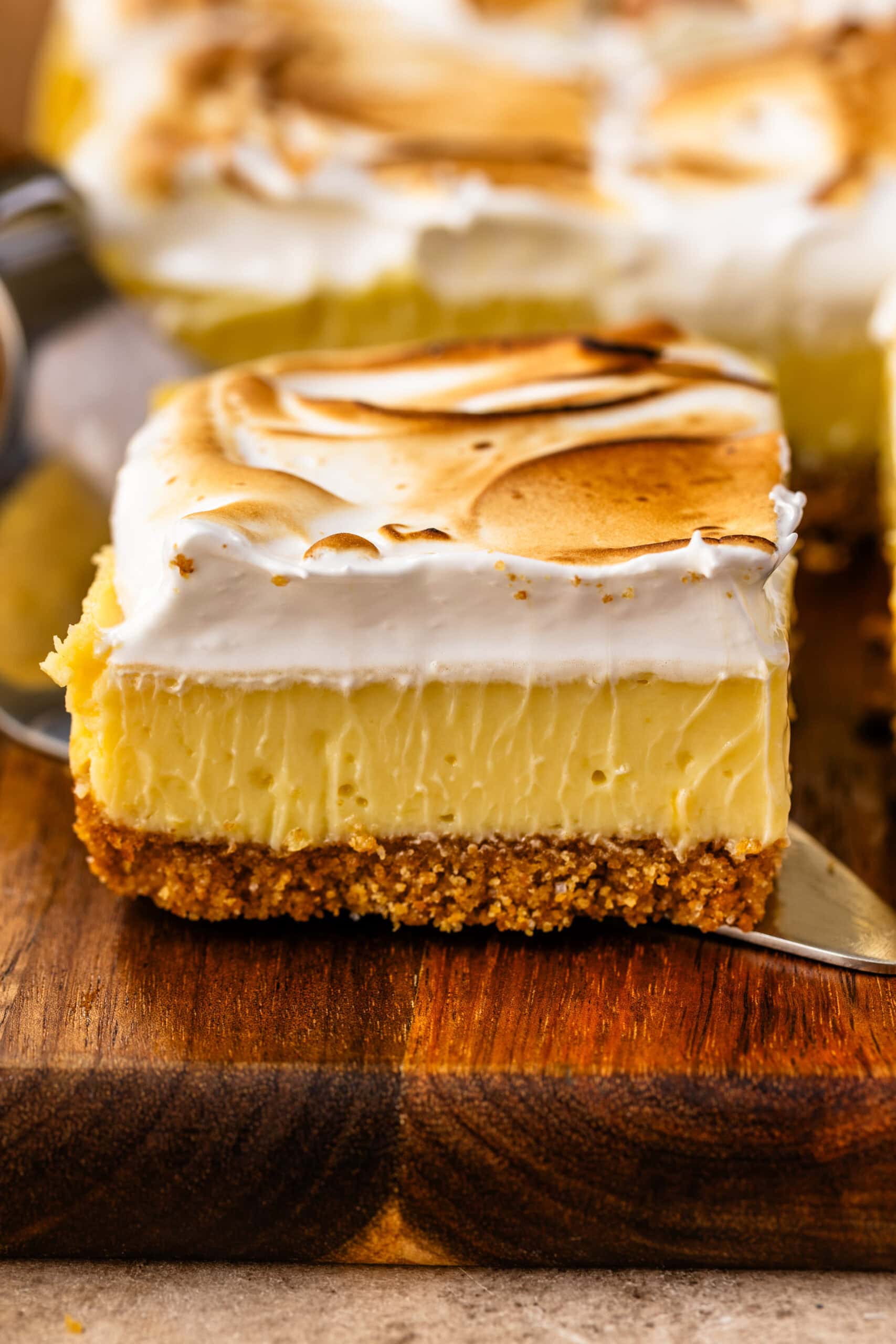 Store the finished pie or bars in the refrigerator for up to 3 days. Keep loosely covered with plastic wrap or a domed bowl to prevent the meringue from weeping. For best texture, add the meringue just before serving or the day of.