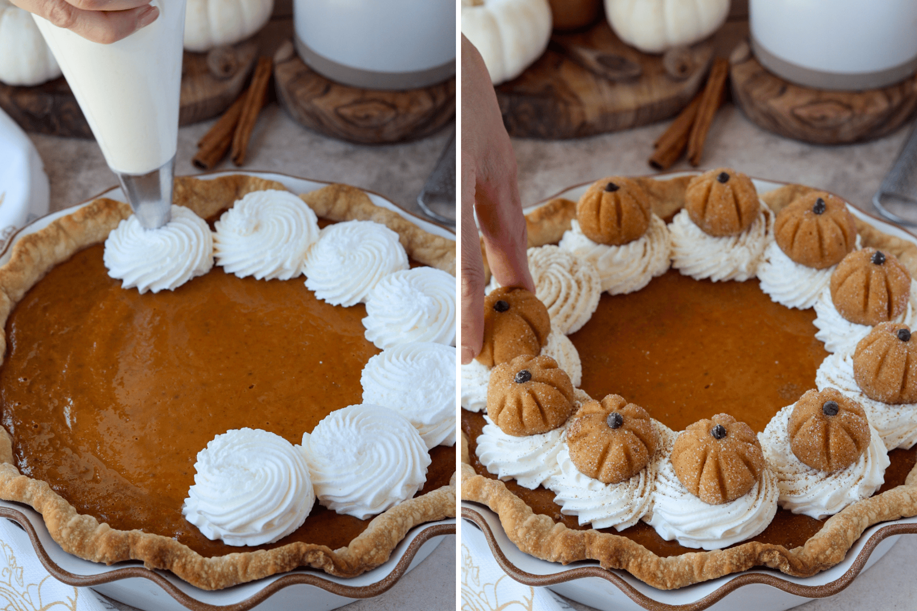 Once your pie has cooled, itโs time to dress it up. A generous dollop of whipped cream is always a good idea, but you can also drizzle on some Caramel Sauce or top it with Pumpkin Brigadeiros for a festive finish. The filling sets beautifully, making it easy to cut clean slices that show off that creamy interior.
