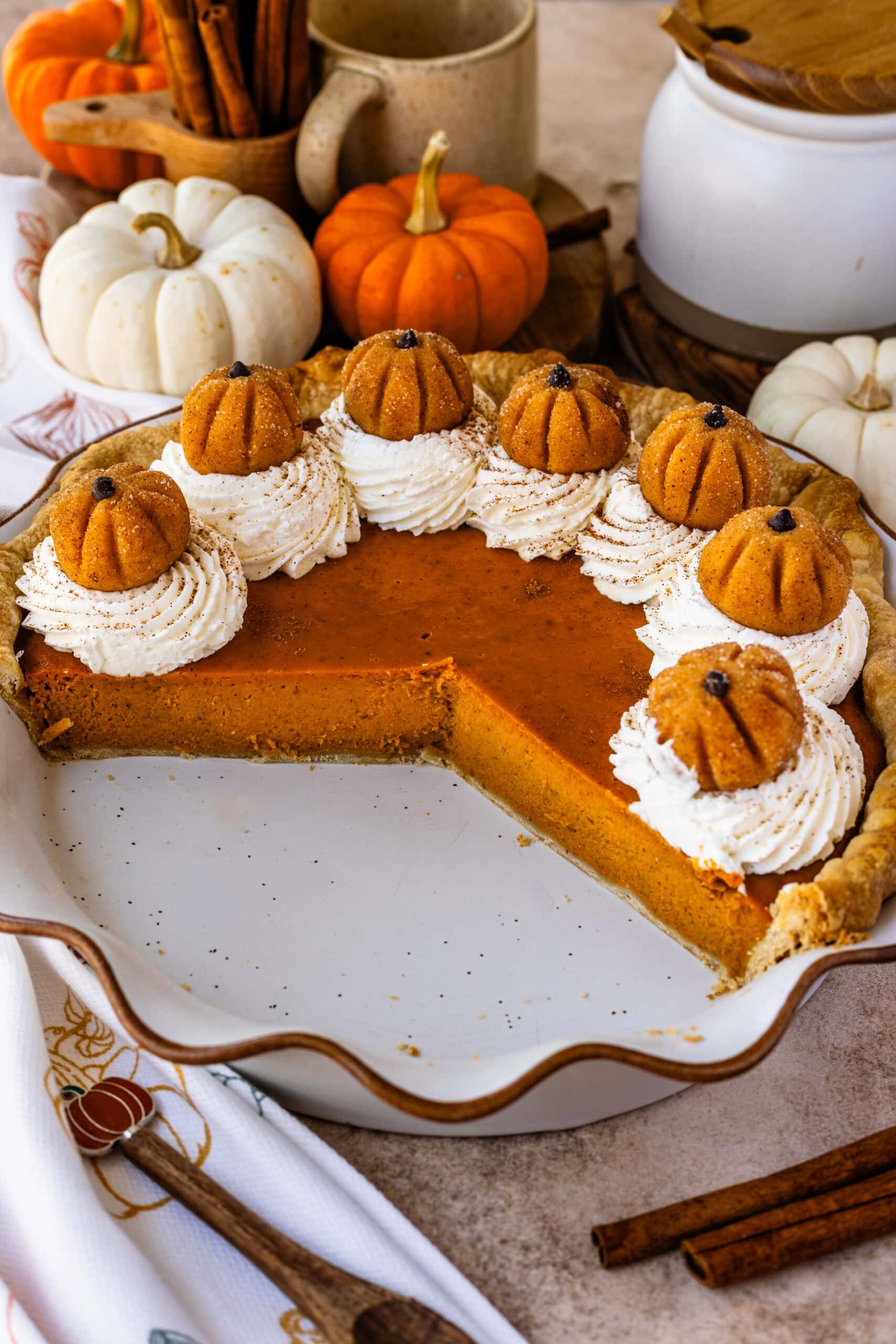 Iโve baked countless pumpkin pies over the years for my blog, my cookbook, and my bakery, and I can confidently say this is the best pumpkin pie recipe youโll ever try. Itโs smooth, silky, and full of cozy spices like cinnamon, ginger, nutmeg, and cloves. This classic pumpkin pie is made with simple ingredients you probably already have in your pantryโcanned pumpkin, sweetened condensed milk, eggs, and vanilla extractโand it bakes beautifully in either a homemade pie crust or a store-bought crust.