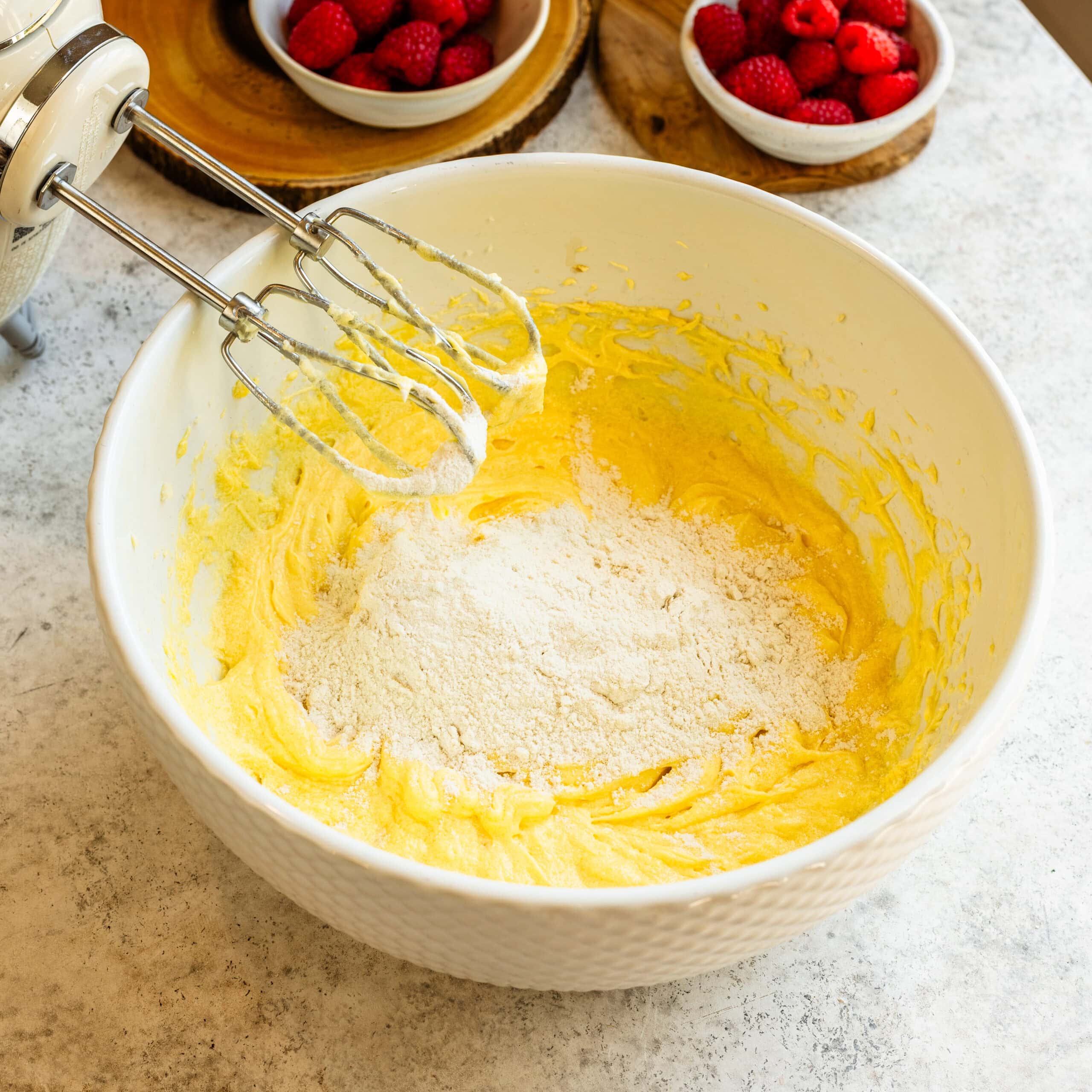 Raspberries: I cook them down into a jam instead of folding them into the batter. This prevents excess moisture in the cake layers.