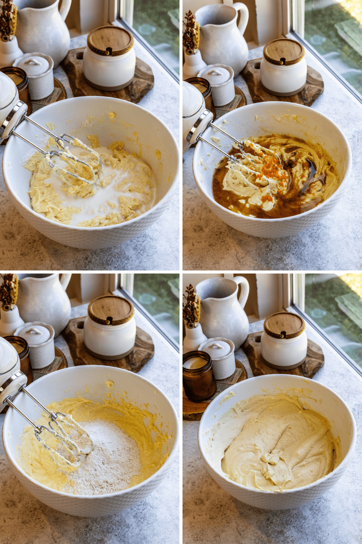 - Finish with the final third of the dry ingredient mixture, mixing until the batter is smooth and thick.