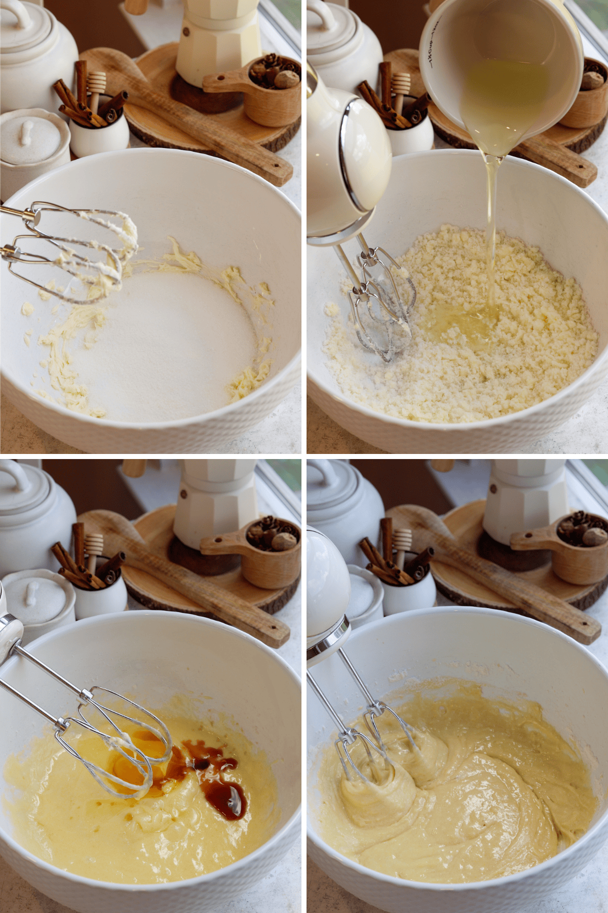 - In the bowl of an electric mixer, beat the butter for 30 seconds. Add the granulated sugar and oil, then beat on medium speed for about 2 minutes until creamy and fluffy. Scrape the sides of the bowl as necessary.