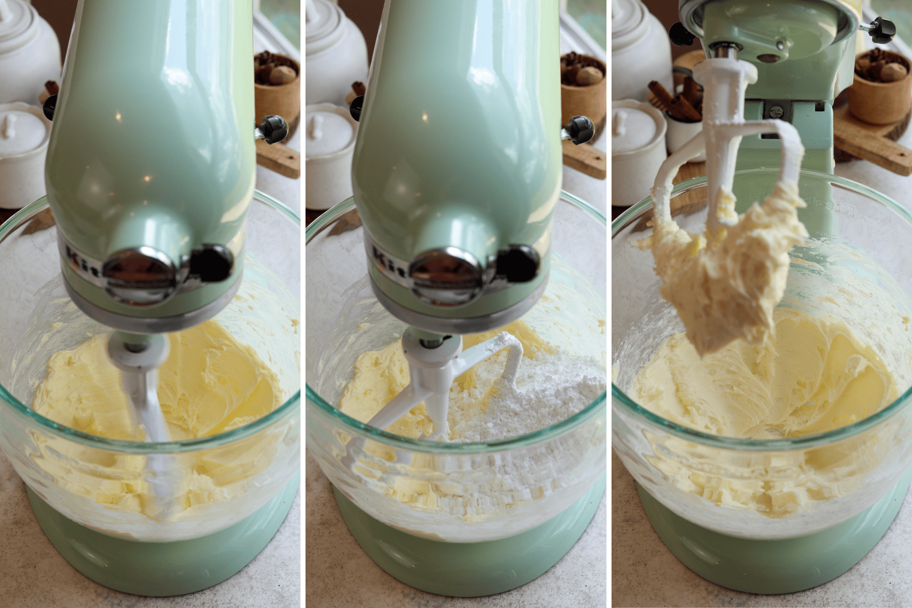 - Gradually add powdered sugar, mixing on low speed. Add about 1/4 cup at a time.