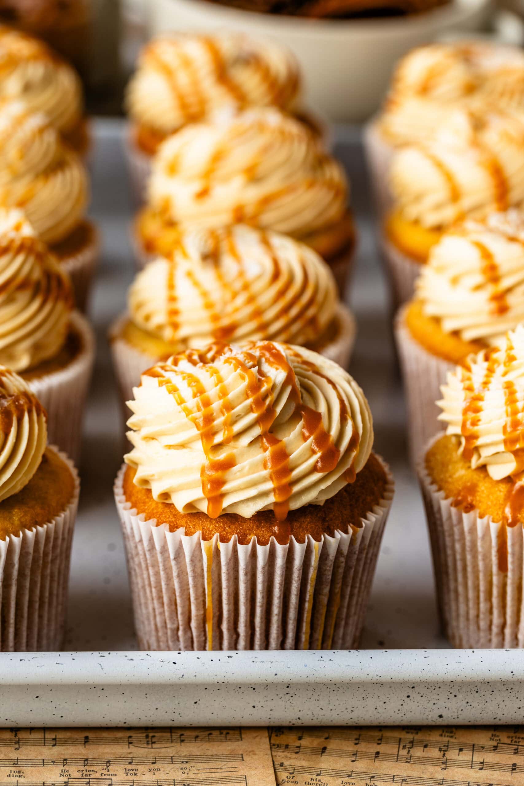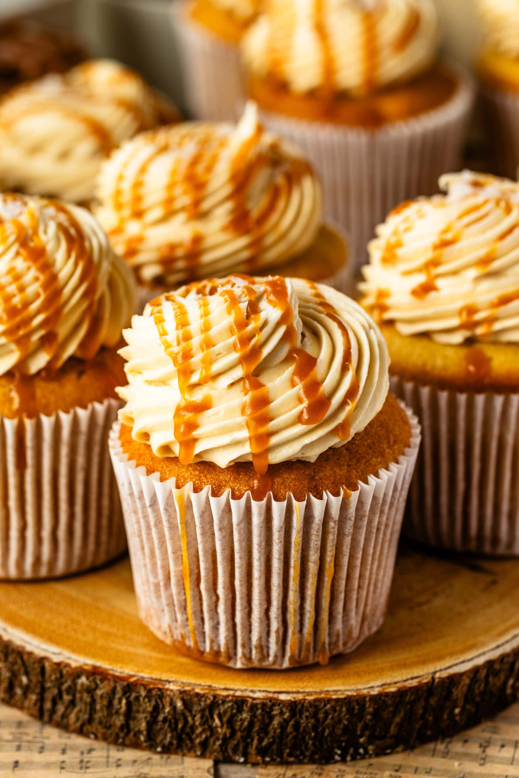 Once the cupcakes have cooled, use a small knife or a cupcake corer to remove the center from the top of each cupcake. Spoon or pipe about 2 teaspoons of caramel filling inside. Pipe the caramel frosting on top using a 4B tip or your preferred style. Drizzle with more caramel and finish with a pinch of Maldon salt. Each bite offers that sweet-salty balance that caramel lovers canโt resist.