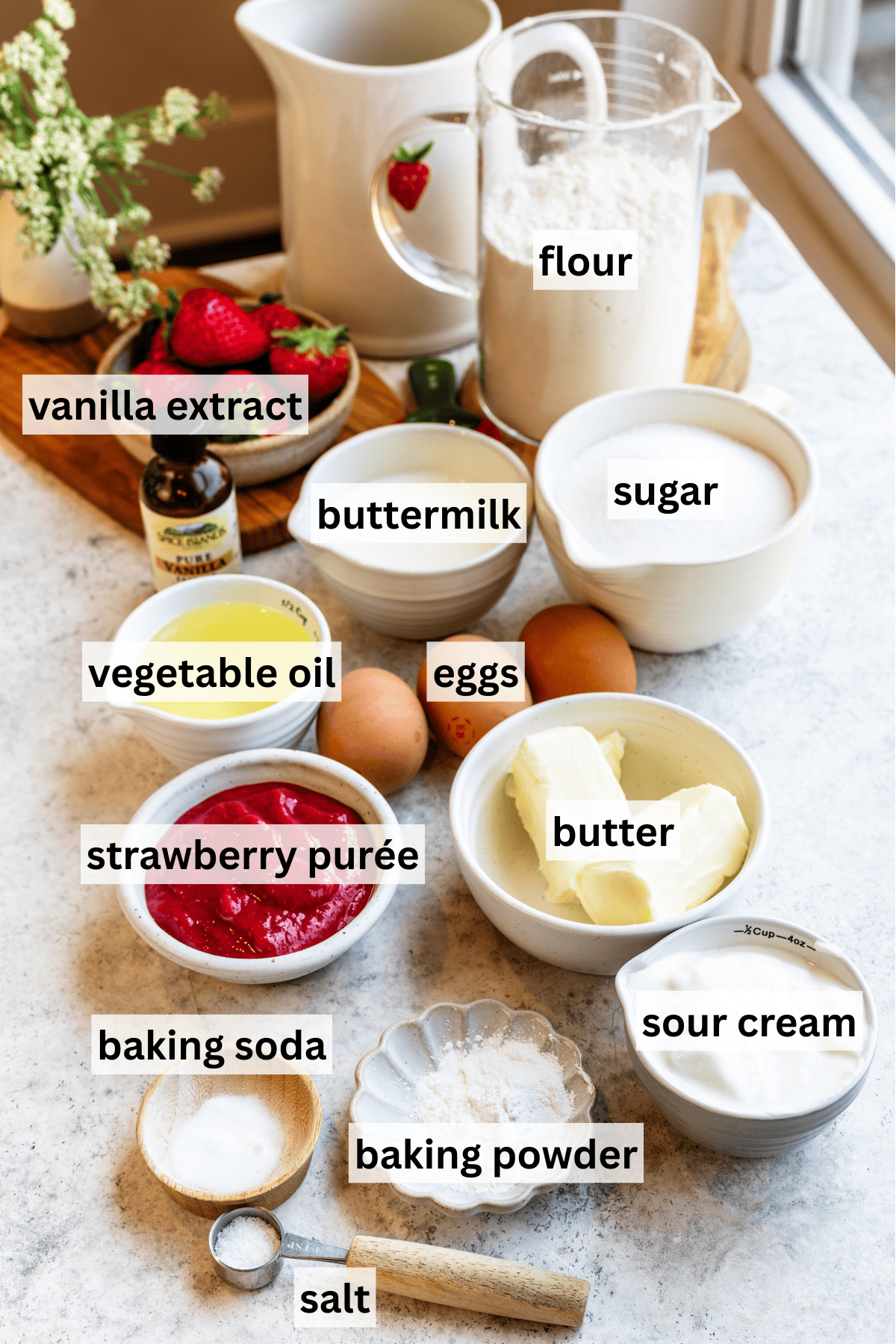 Cream cheese (for the frosting) โ Just enough to balance the sweetness without overpowering the strawberry.