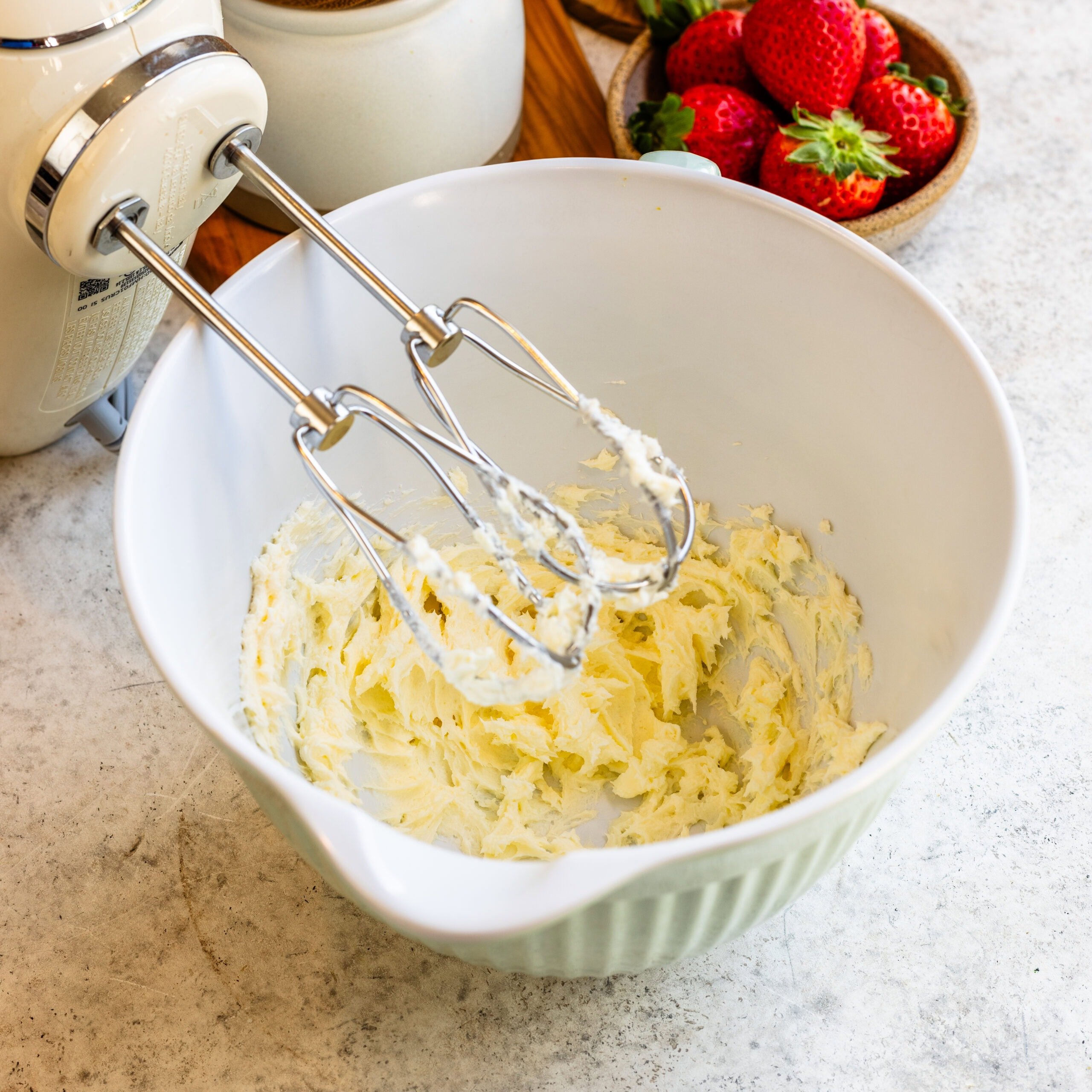 - Use an electric mixer to beat the butter at medium speed for 30 seconds. You can use a stand mixer or a hand mixer.