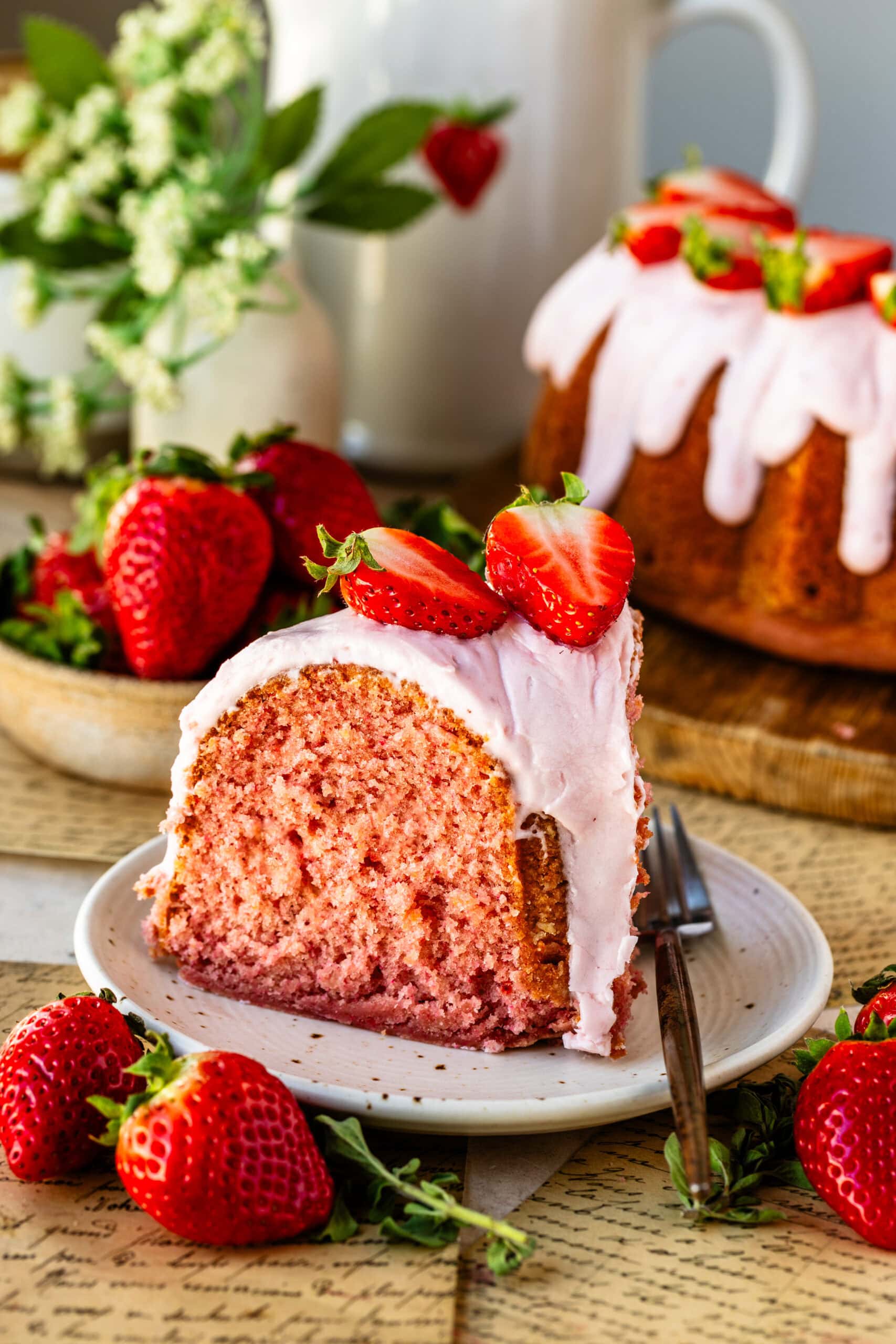 If you make this strawberry bundt cake, Iโd love to see it. Tag me on Instagram or leave a comment and rating below โ I always enjoy seeing how these recipes turn out in your kitchen.