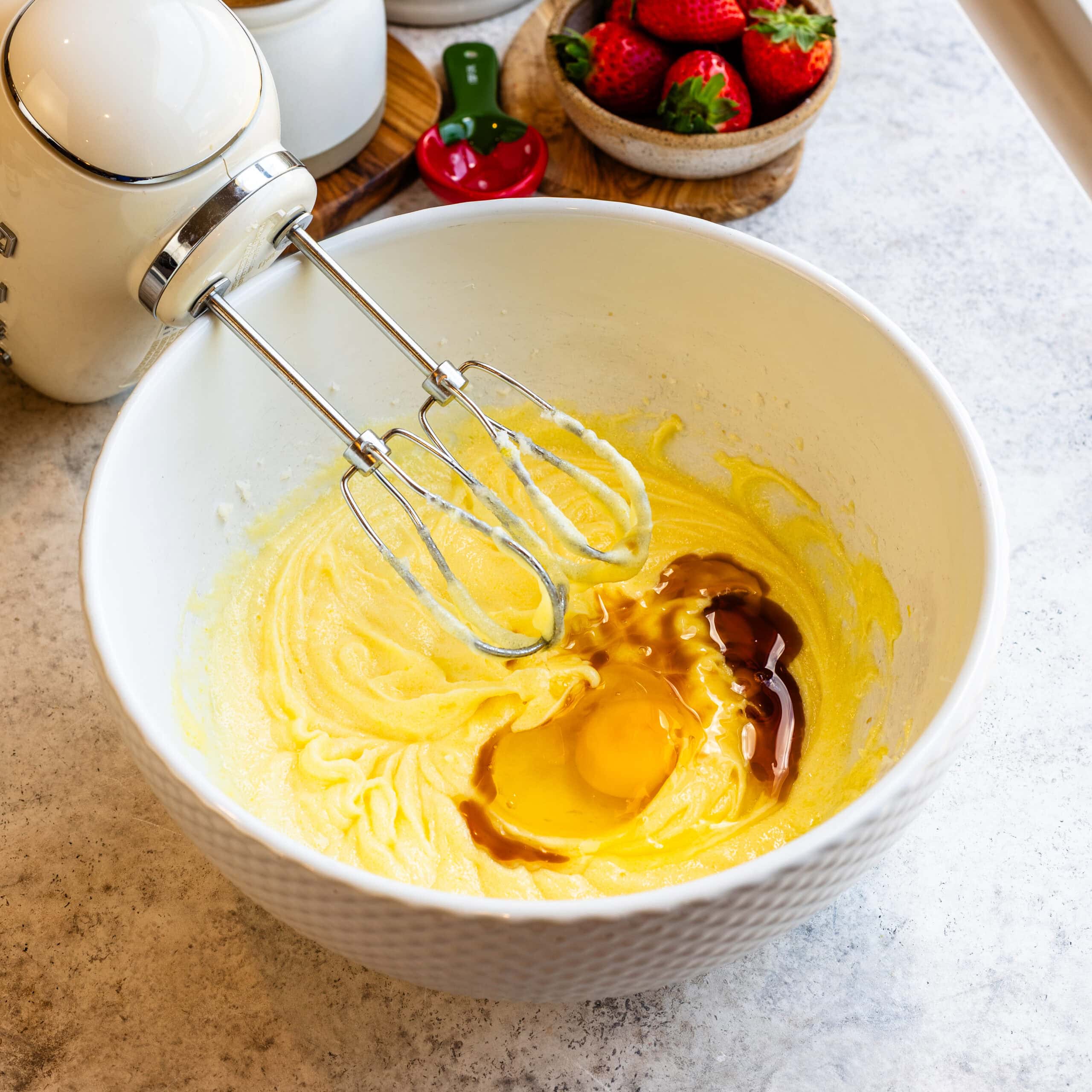 Step 4: Add the eggs and vanilla