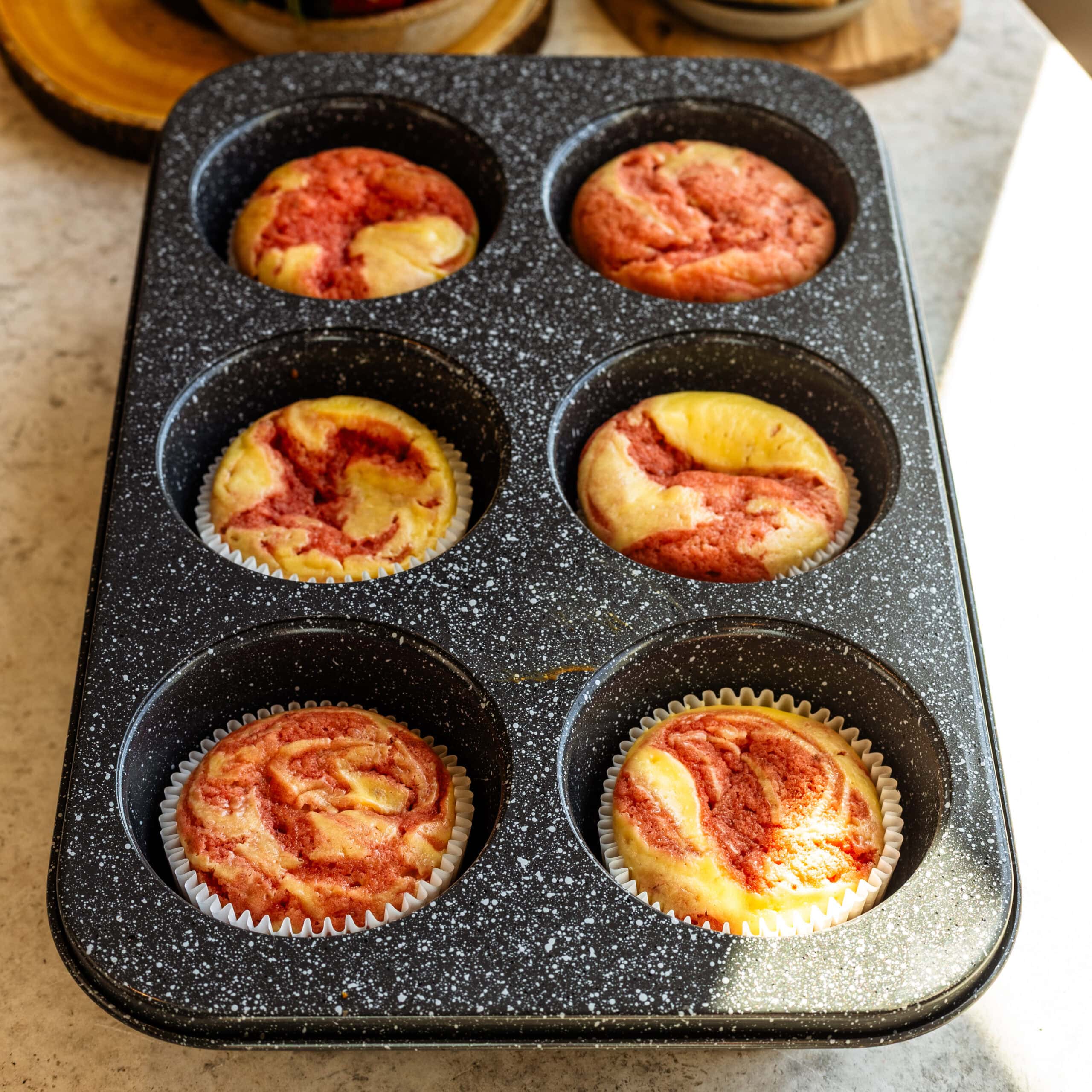 - Let them fully cool down, then place them in the fridge for at least a couple of hours to allow the cheesecake layer to set.