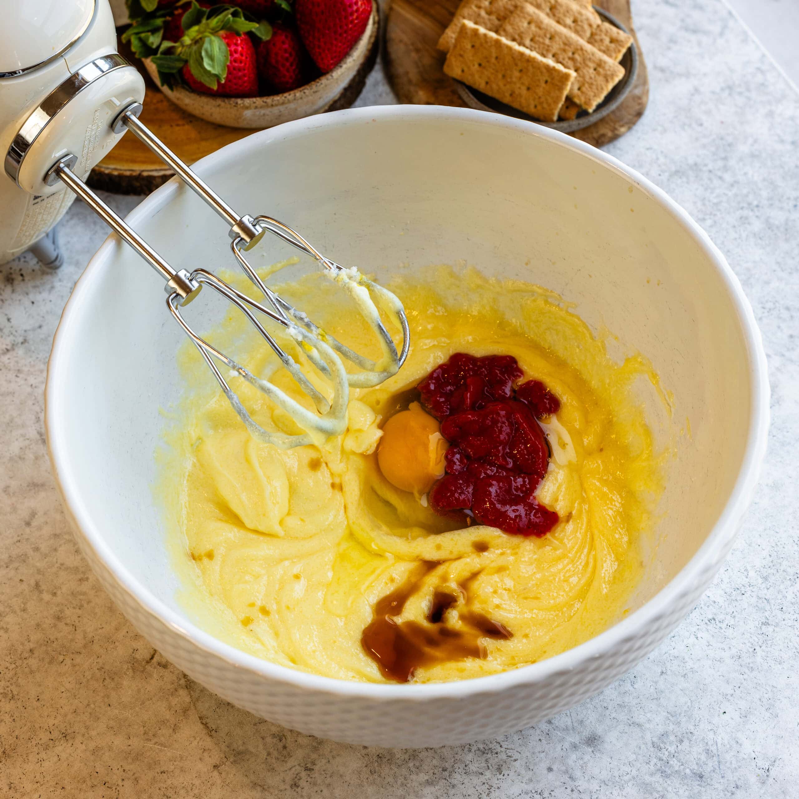 - Donโt overmix after adding eggs to the cheesecake batter.