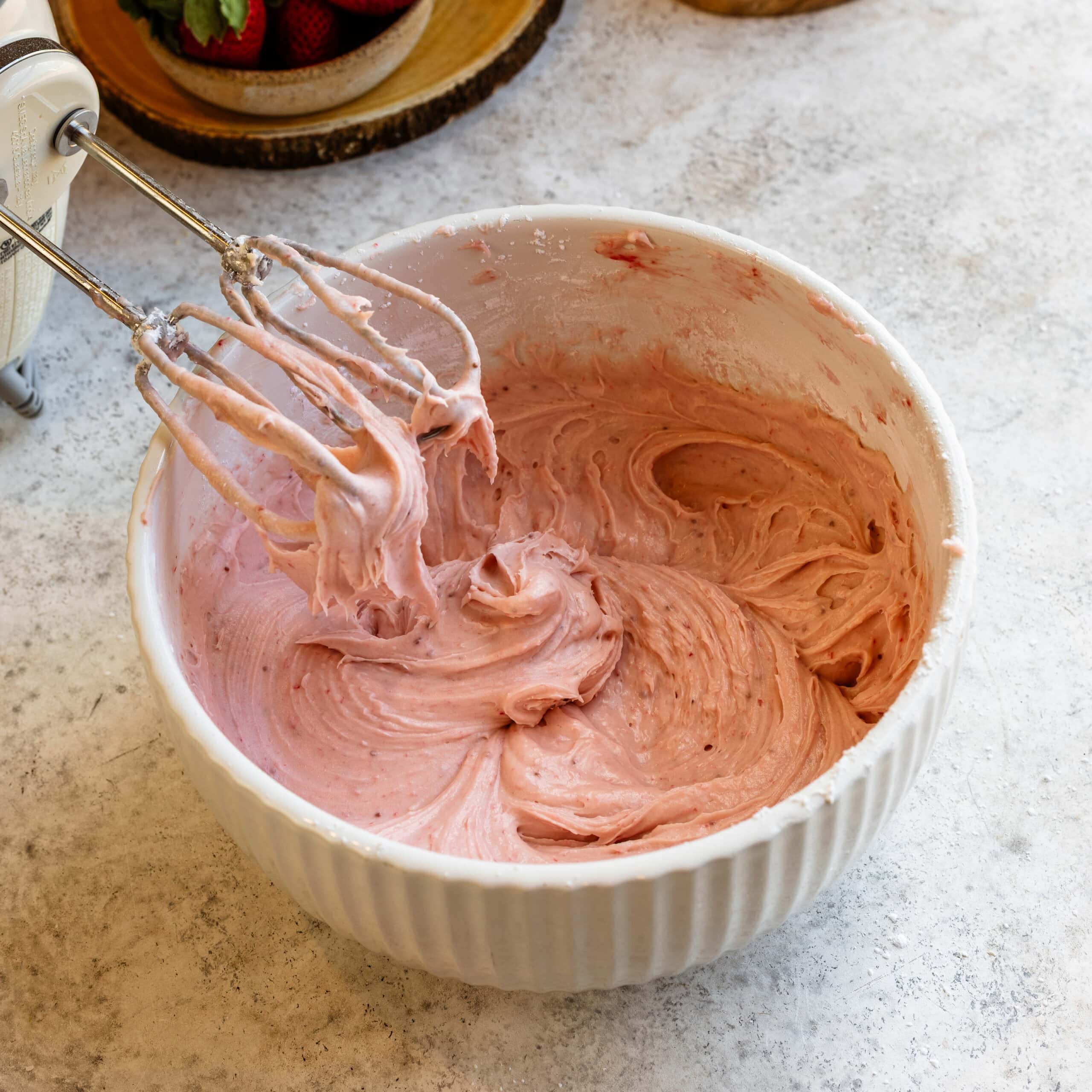 Step 11: Make the strawberry cream cheese frosting