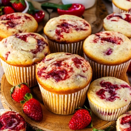 These are the kind of muffins that feel special without being fussy. The strawberry reduction gives you real, concentrated fruit flavor instead of watery pockets, and the cream cheese center adds a soft, slightly tangy contrast that makes each bite perfectly balanced. They bake up tall with domed tops, stay moist for days, and work just as well for brunch as they do for freezing ahead.