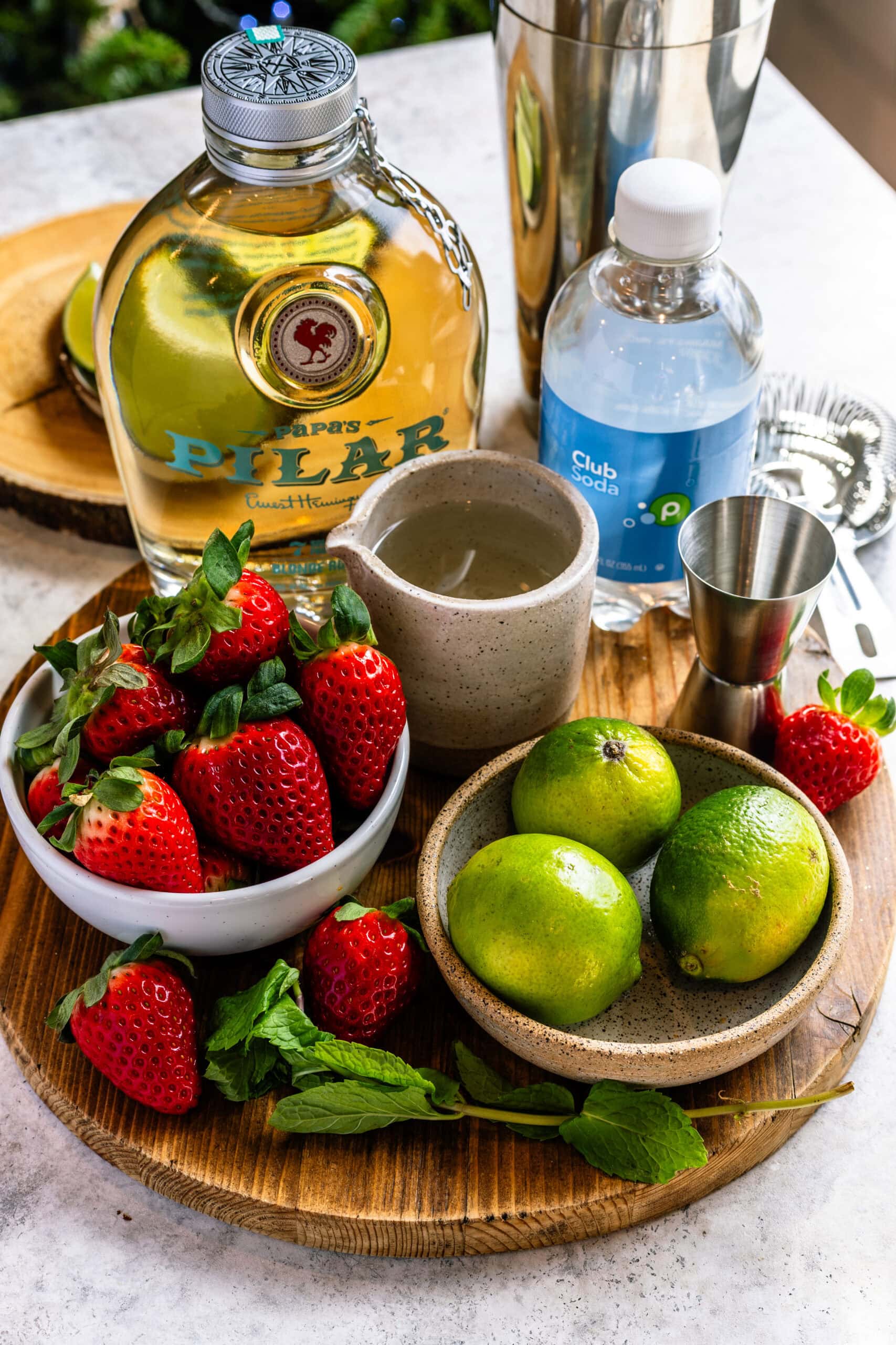 You can muddle and strain the strawberry, lime, and mint mixture a few hours ahead and refrigerate it. Add the rum, ice, and club soda just before serving.