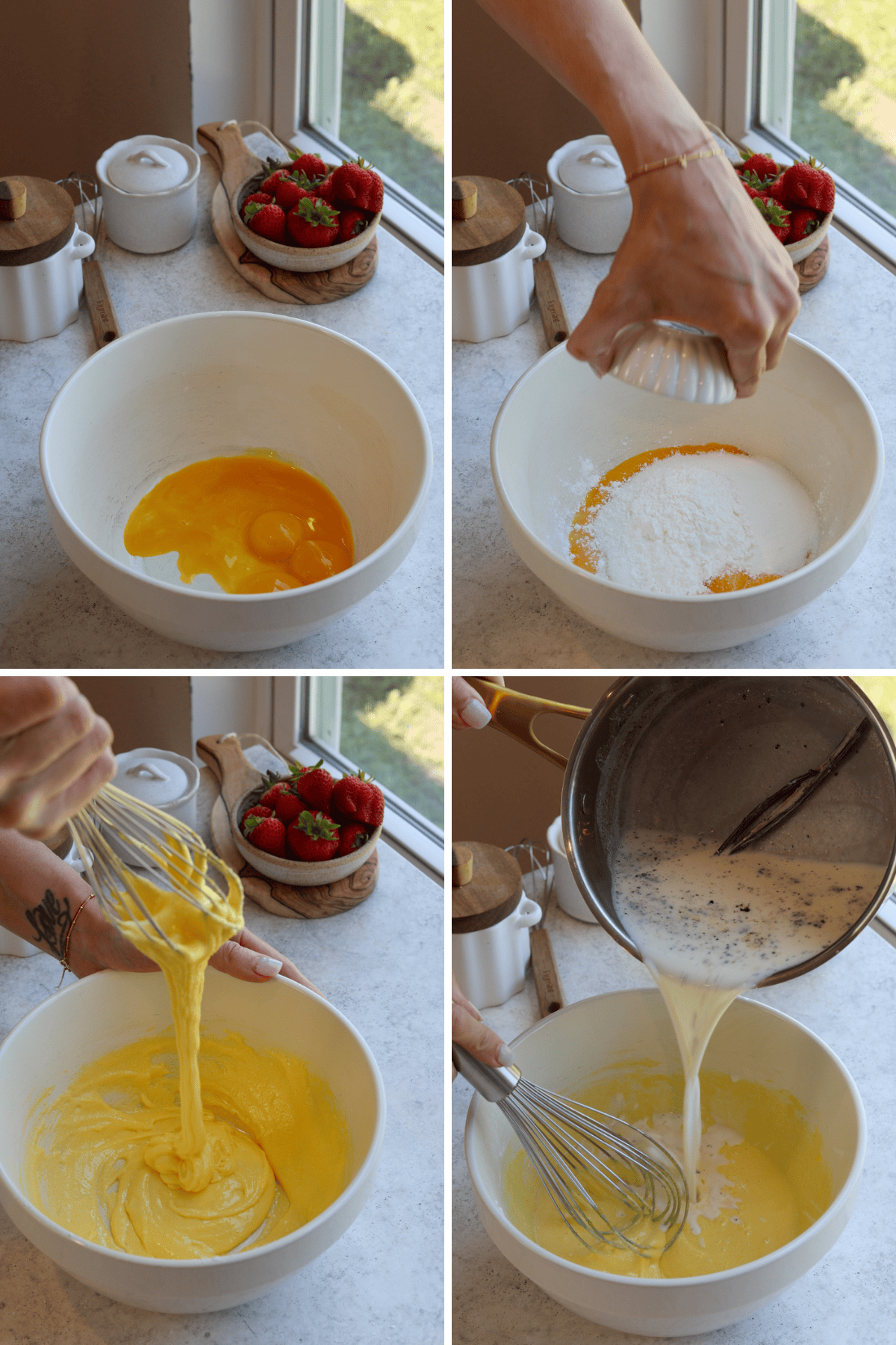 - Whisk egg yolks, sugar, and cornstarch in a bowl for a couple of minutes, until pale in color.