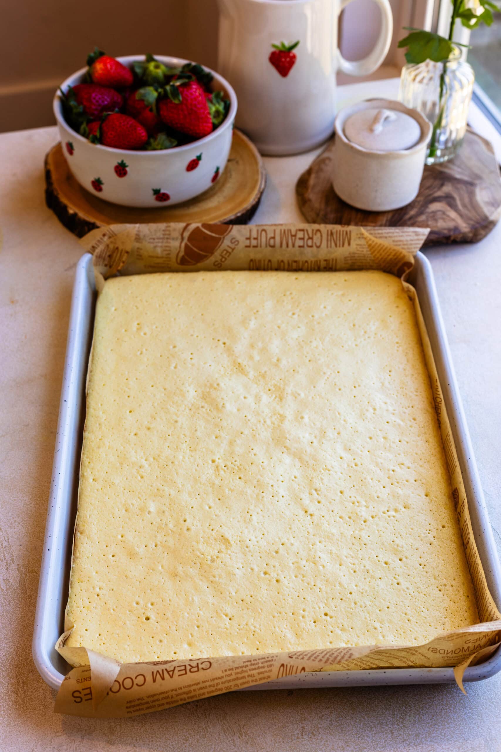 - Do not overbake. Even slight browning dries the sponge. The cake should look set and spring back lightly, not crisp at the edges.