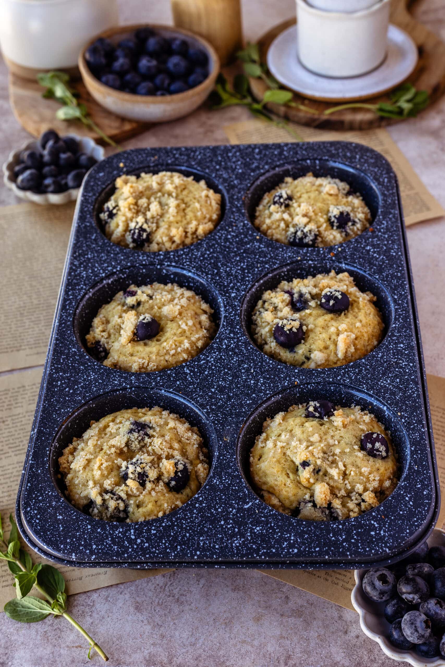 Iโve been perfecting this bakery-style blueberry muffin recipe for years. I first shared it back in 2018, and since then Iโve made it countless times, adjusting little details along the way until it became exactly what I wanted: tall, fluffy muffins packed with juicy blueberries and finished with a sweet, crunchy crumble on top.