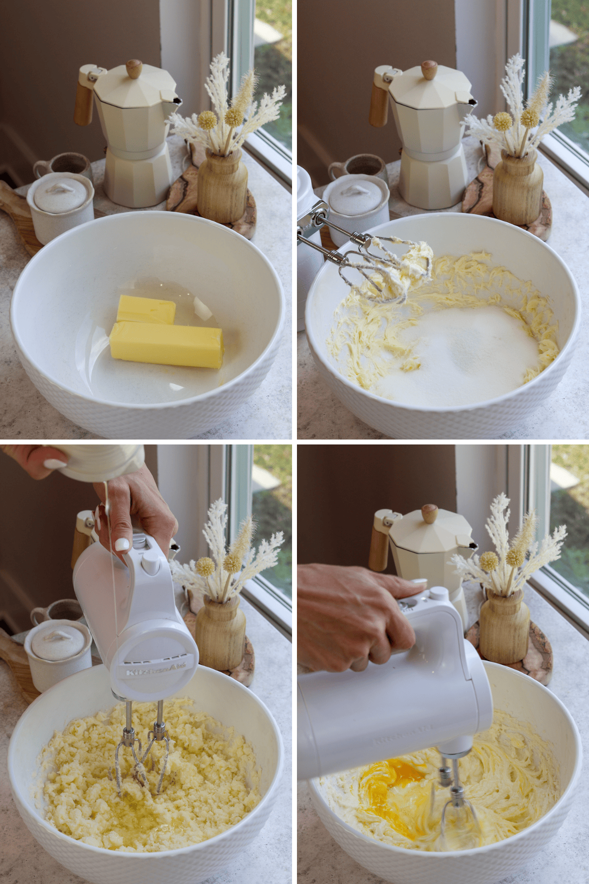 - Add the eggs, one at a time, mixing one egg completely until incorporated before adding the next one.