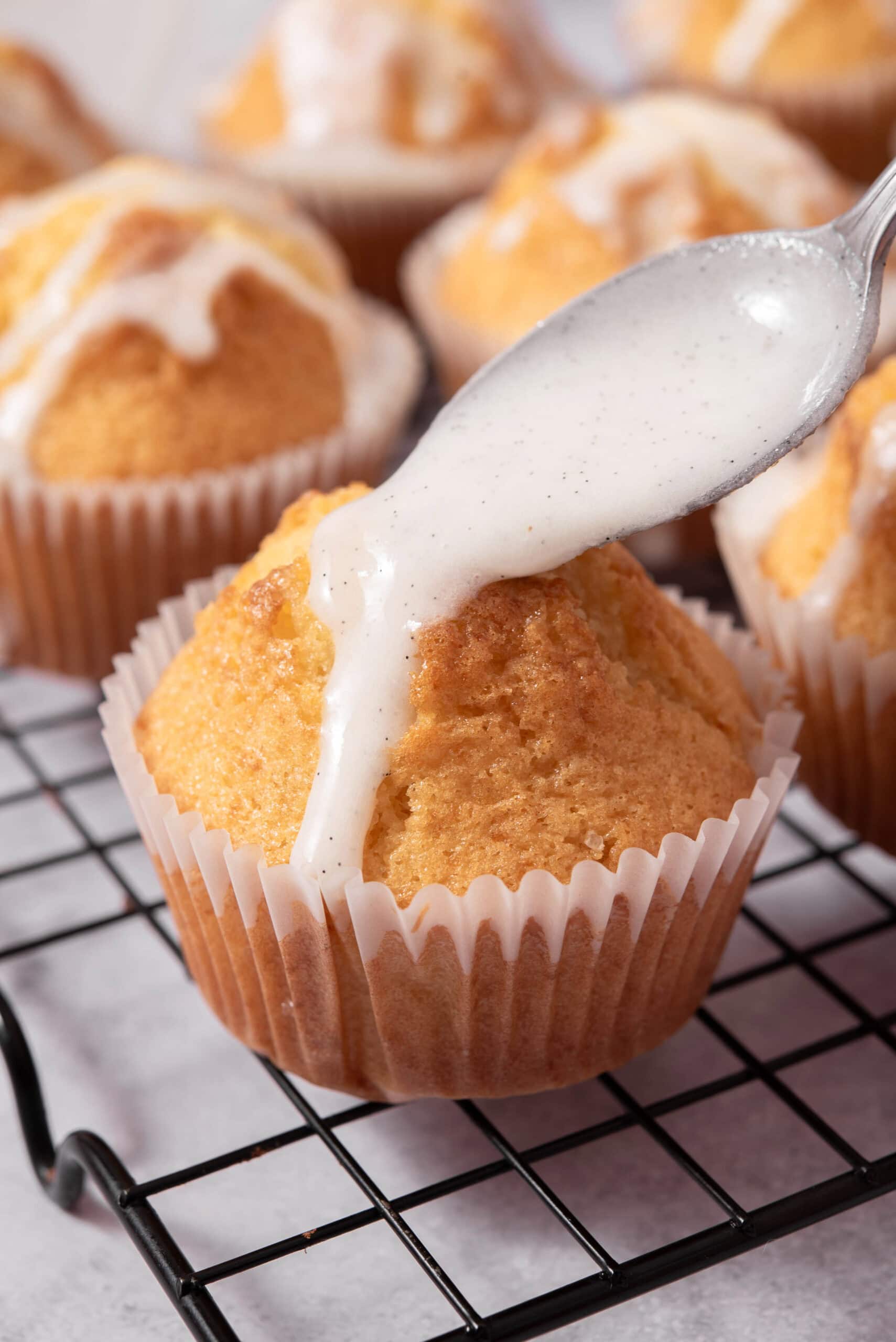 - Pour the glaze over each cooled down muffin.