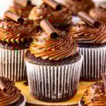 Cocoa Powder: You can use Dutch processed cocoa powder as well as natural in this recipe. I usually just use natural, but have used Dutch processed with success. Typically, recipes using Dutch processed cocoa will call for baking powder, since Dutch processed cocoa powder is neutral and won’t react with baking soda. However, since this recipe has both baking powder, and baking soda, plus milk, which is acidic, you are safe to use either type of cocoa powder.Coffee: Substitute the coffee for hot water if desired.Cupcake Batter: The cupcake batter will be very liquidy. Only fill up the cupcake tins halfway.Here are some tips for the frosting: